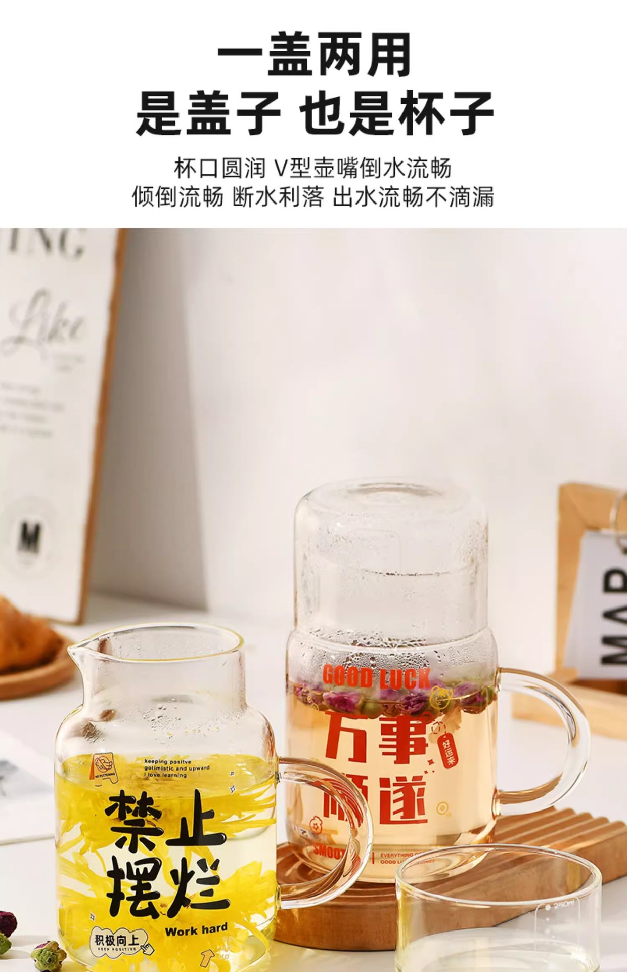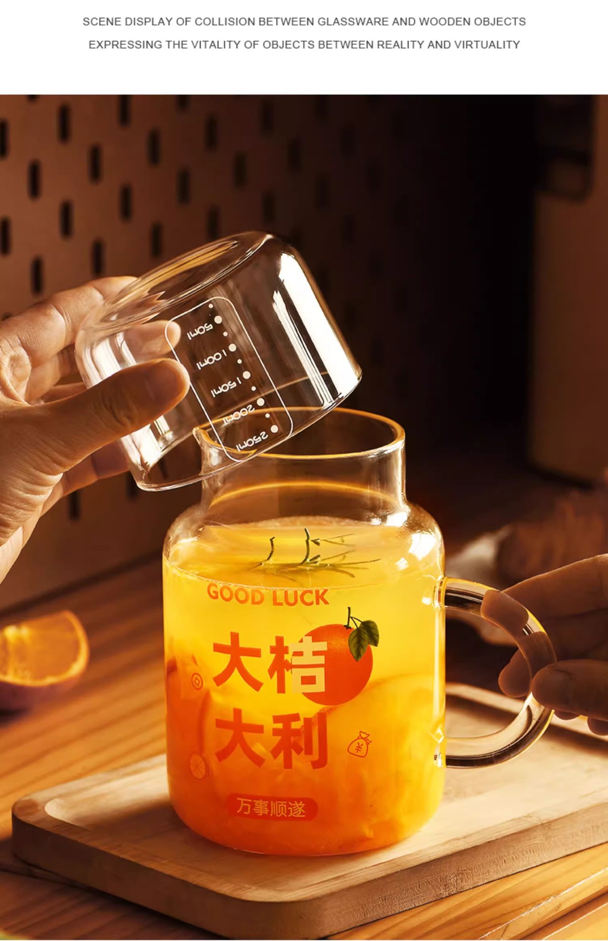 뚜껑이 있는 대용량 유리컵, 가정용 마시는 컵, 여성용 새 내열 컵, 손잡이가 있는 남성용 찻잔스토어 가기