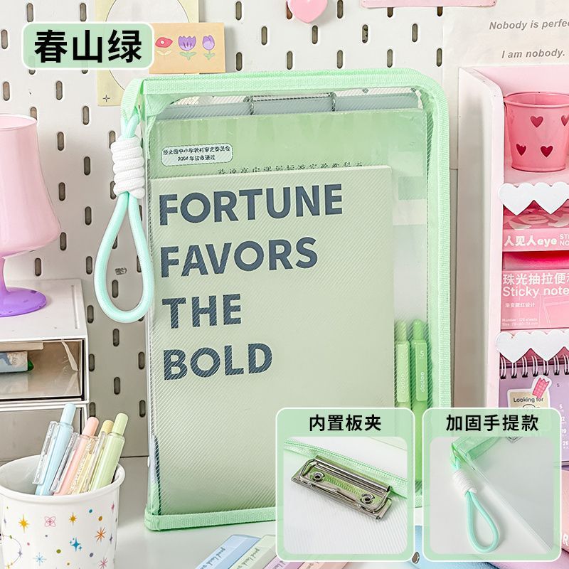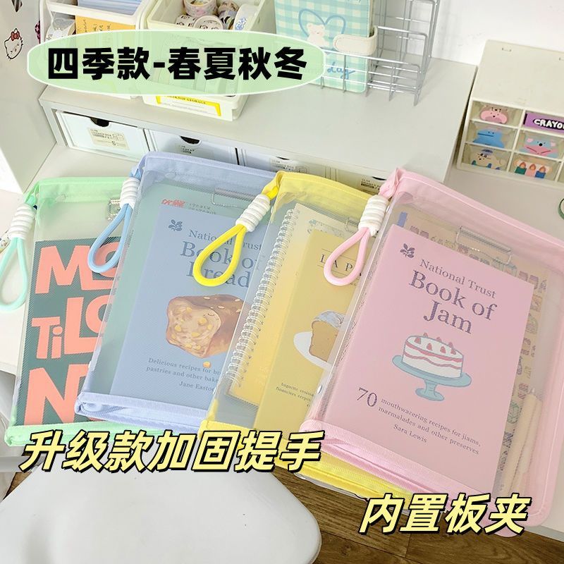 마카롱 파일 수납 가방 투인원 휴대용 대용량 A4 지퍼 투명 책 수납 사무실 기타스토어 가기