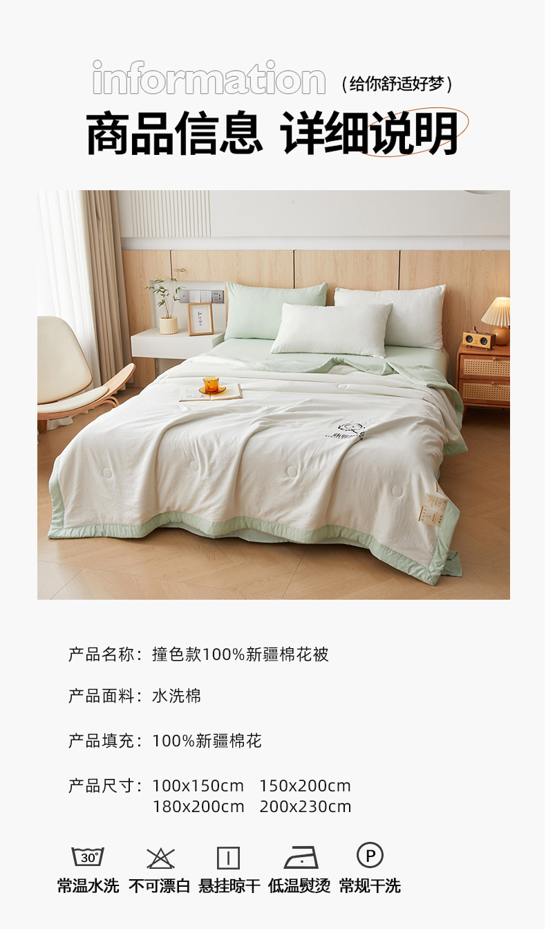 시진양면 에어컨 이불 여름 세탁기로 세탁 가능한 여름 시원한 이불 순면 학생 기숙사 여름 이불 싱글 여름 얇은 이불