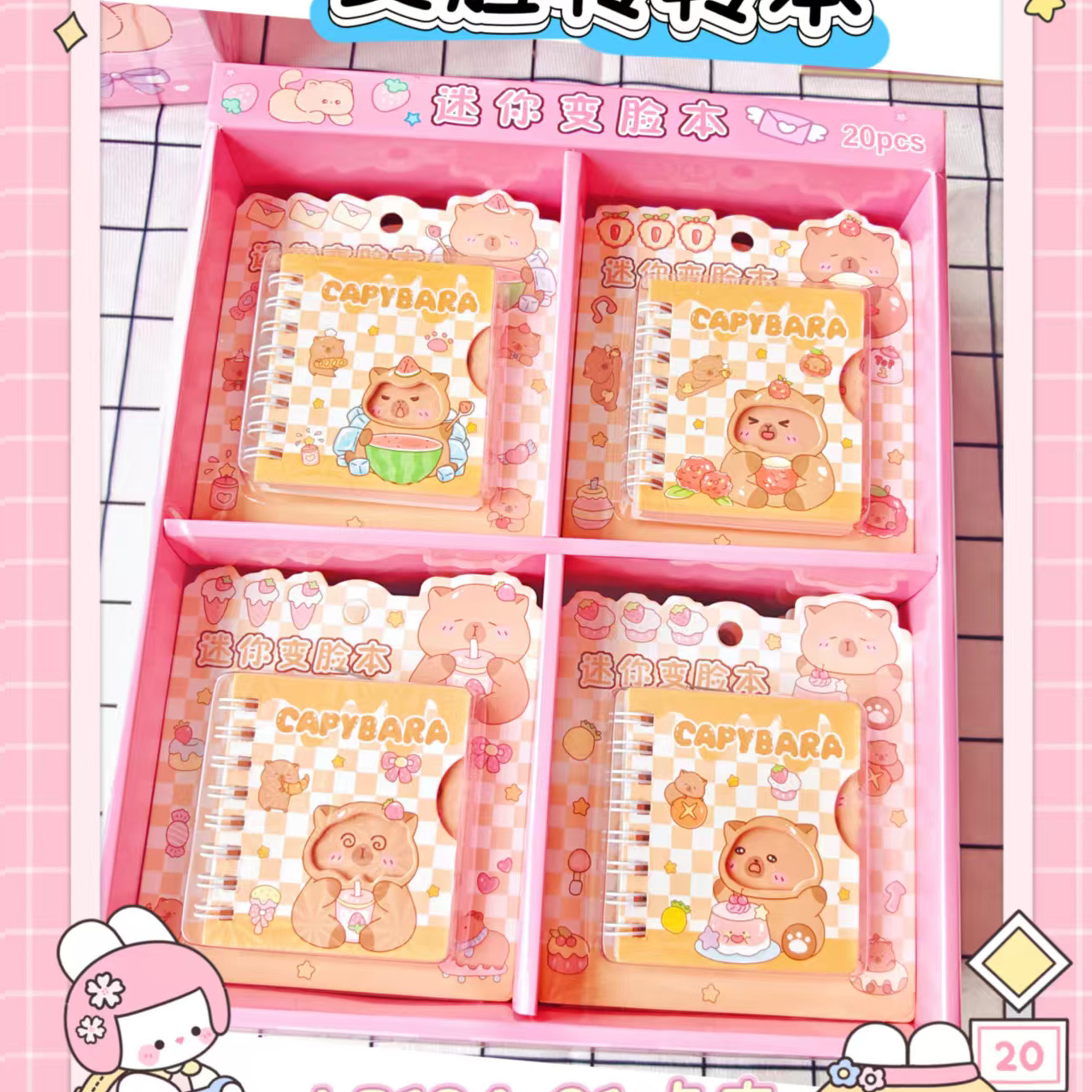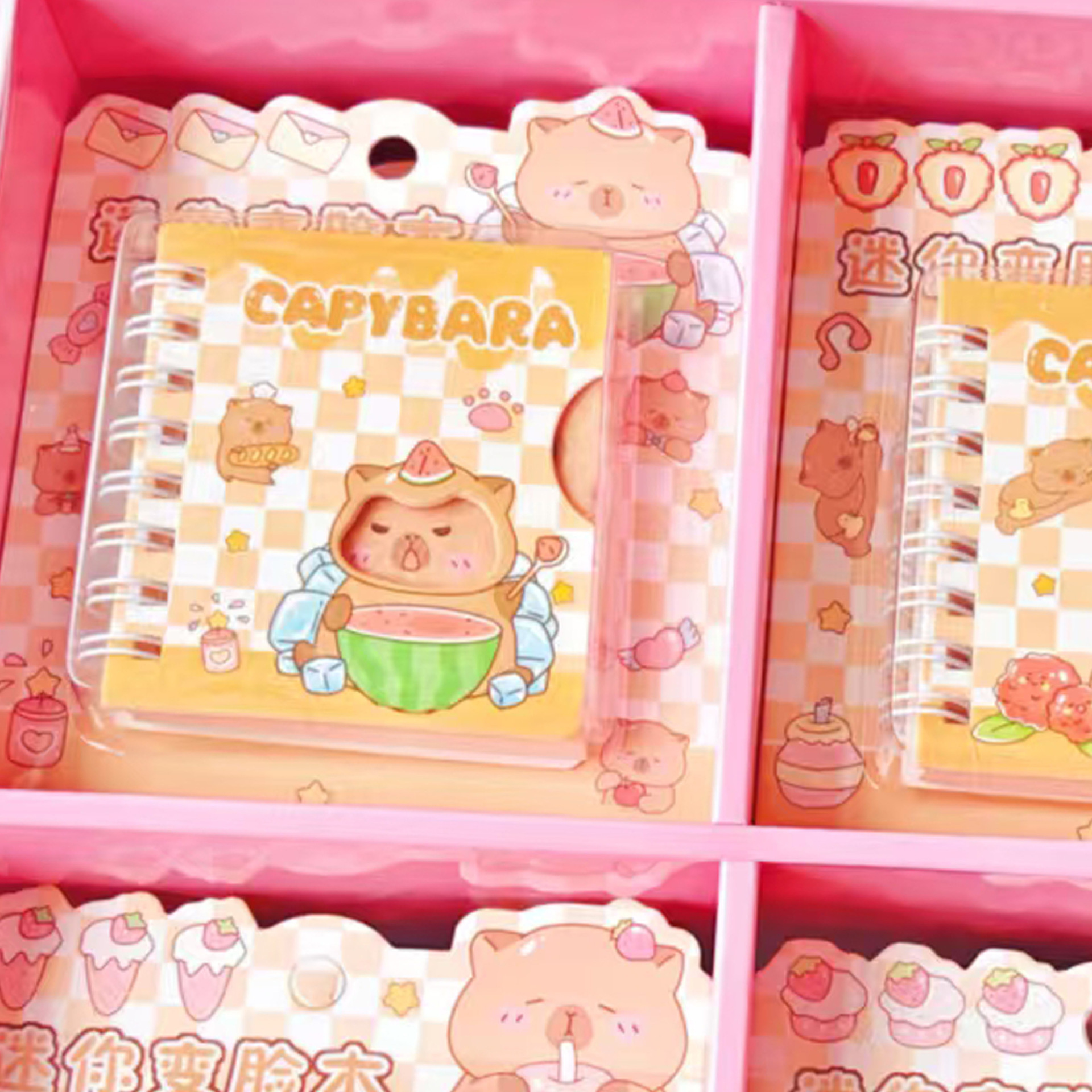 새로운 Kapibala 얼굴 변화 회전 노트북 크리 에이 티브 만화 Kapibara 미니 얼굴 변화 노트북 조합 코일 노트북 세트