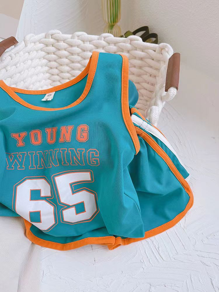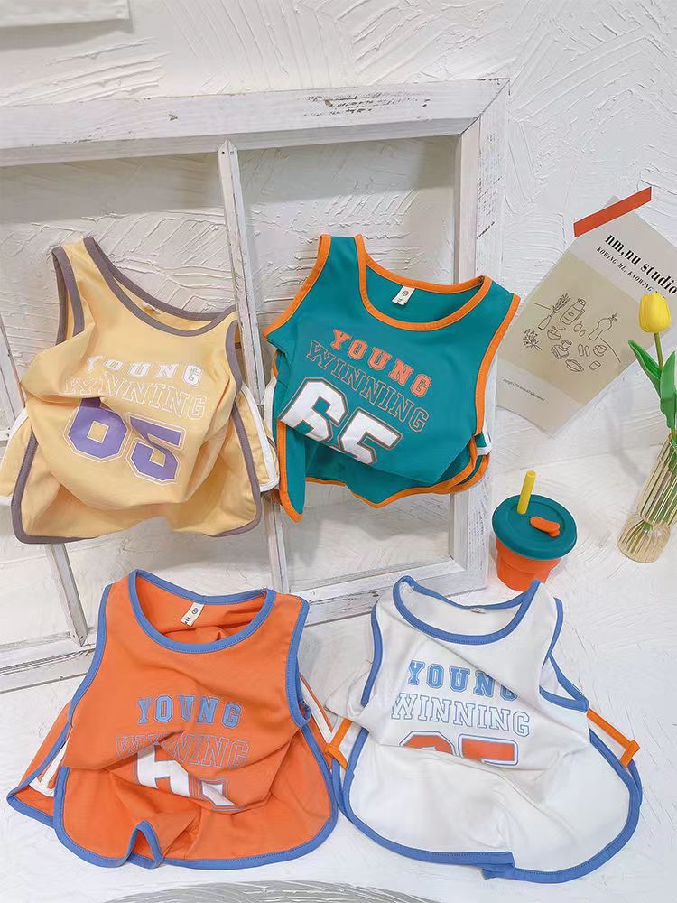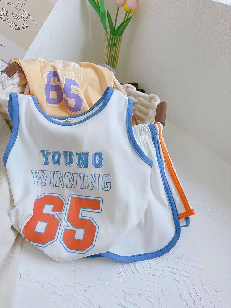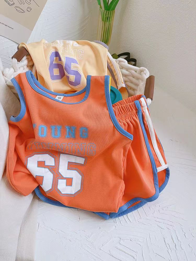 순수 코튼 조끼 반바지 투피스 여름 새로운 어린이 농구 유니폼 민소매 스포츠 슈트스토어 가기
