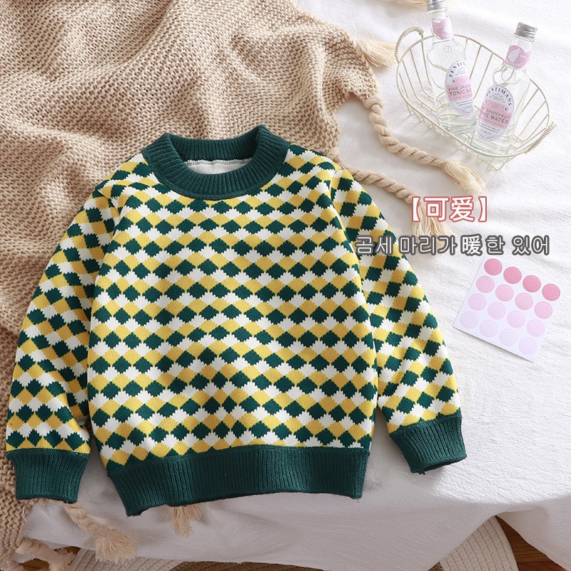 2025 새로운 가을, 겨울 어린이 스웨터 플러스 벨벳 두꺼운 소녀 스웨터 가을, 겨울 아동 의류 소년 라운드 넥 스웨터