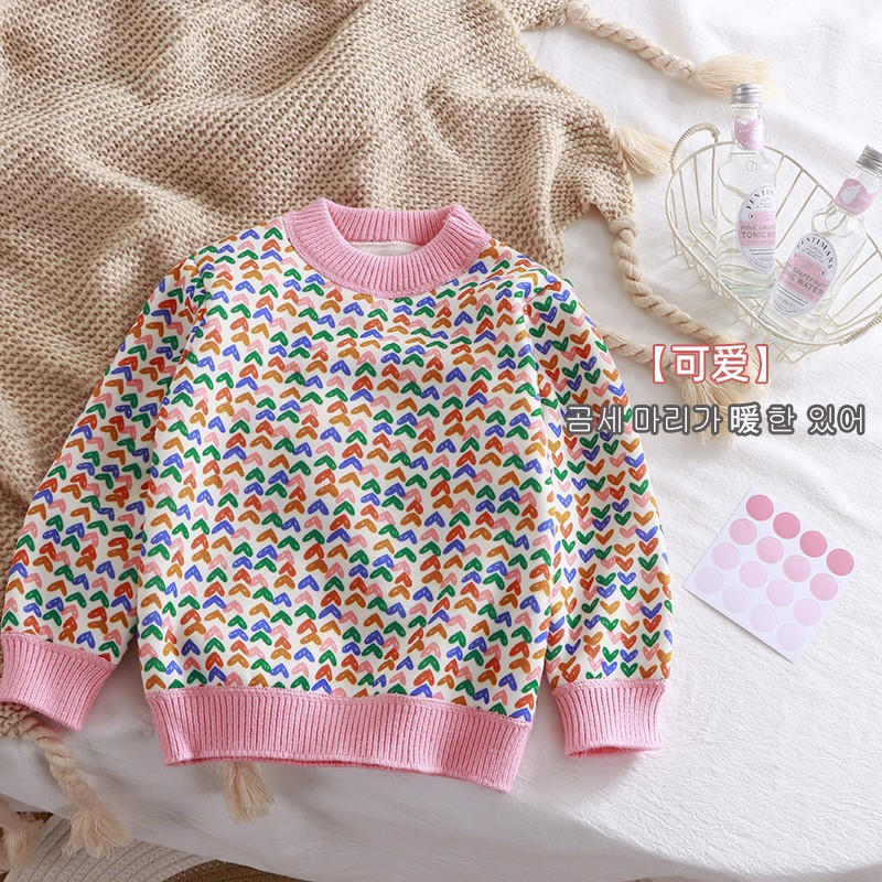 2025 새로운 가을, 겨울 어린이 스웨터 플러스 벨벳 두꺼운 소녀 스웨터 가을, 겨울 아동 의류 소년 라운드 넥 스웨터스토어 가기