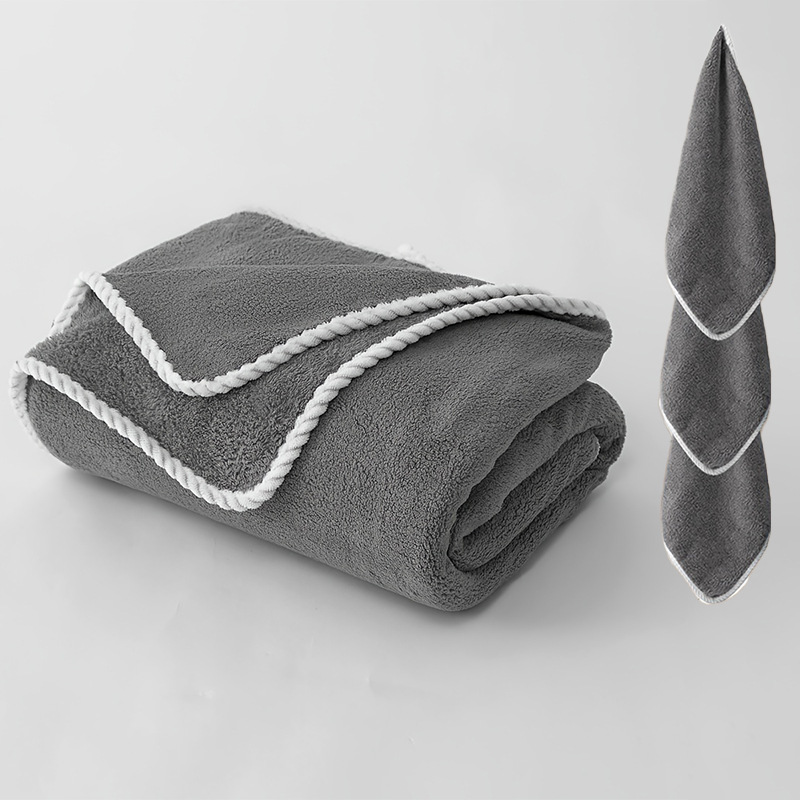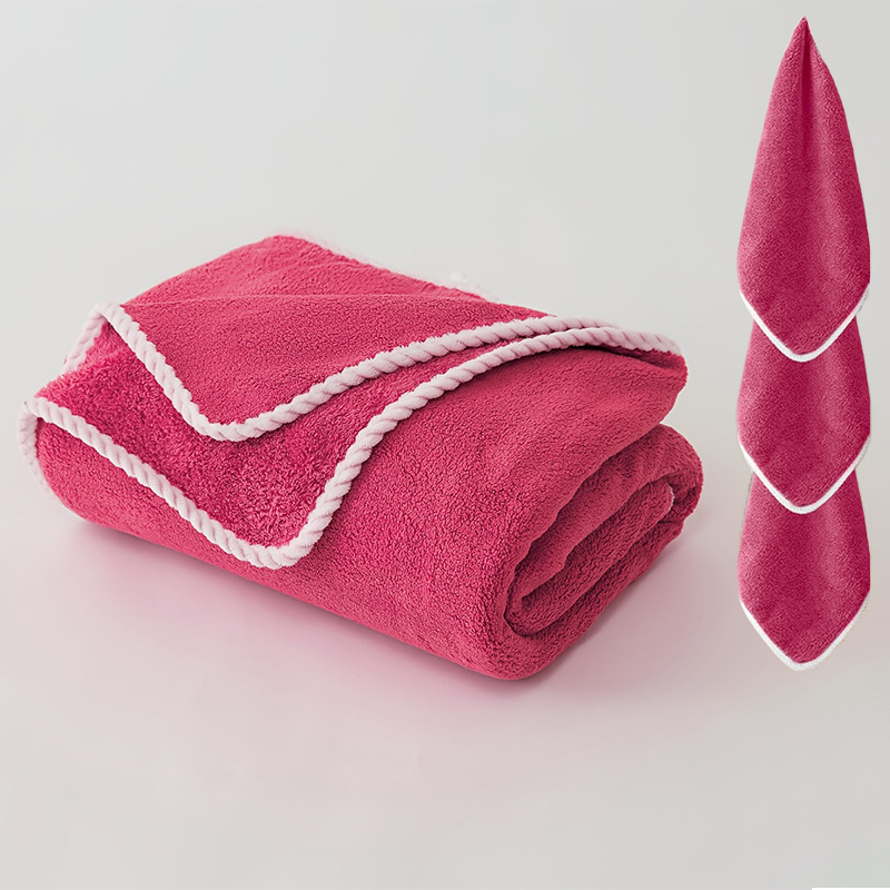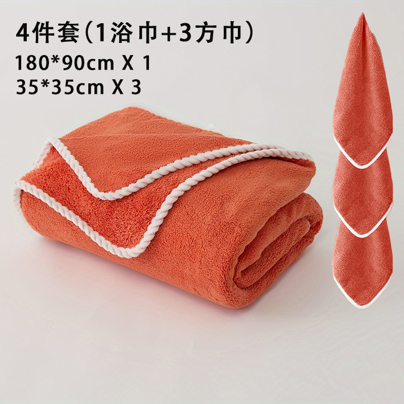 크로스보더 4종 세트 타월 180*90 대형 목욕타월, 레이스 코랄벨벳, 흡수성, 부드러운 세안 및 목욕타월