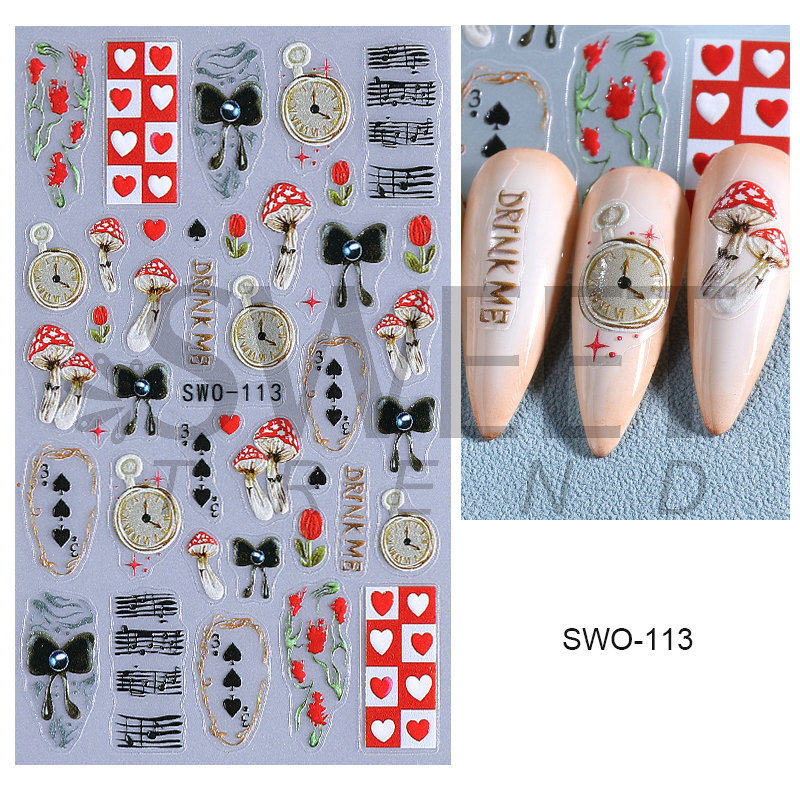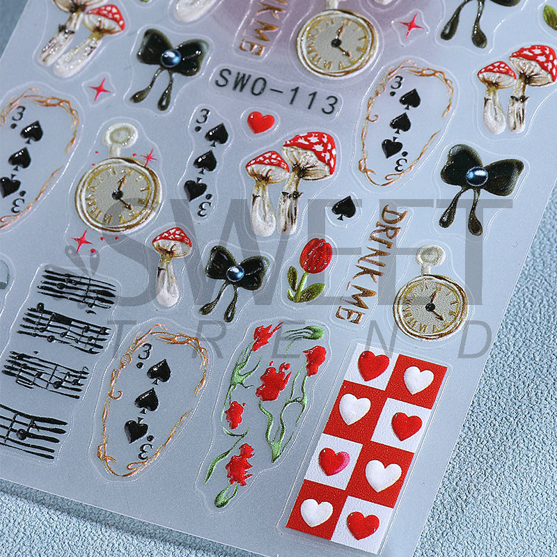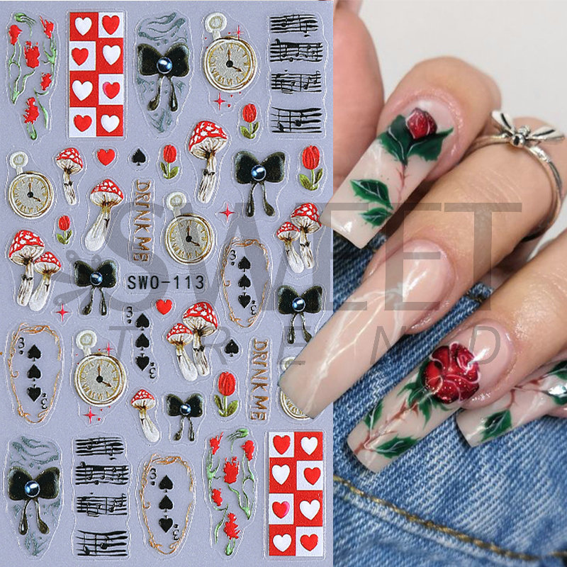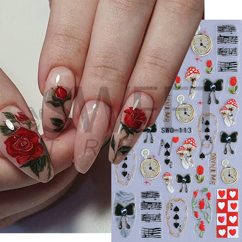 새로운 네일 아트 스티커 국경 간 양각 입체 버섯 장미 카드 노트 시계 접착 네일 패치