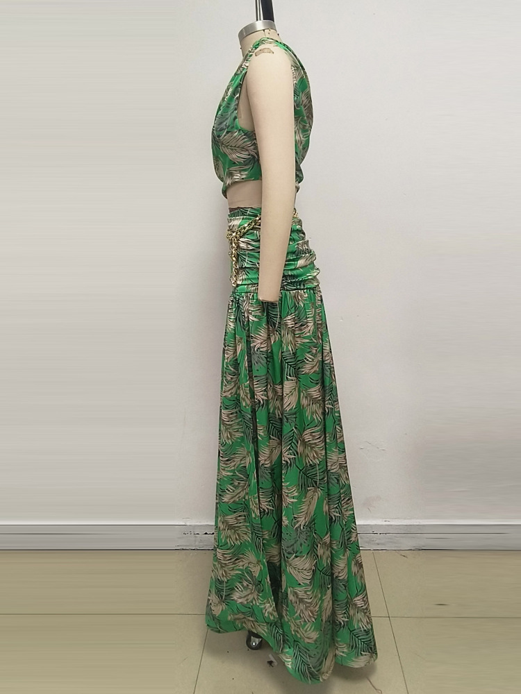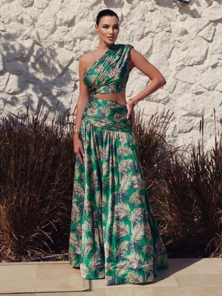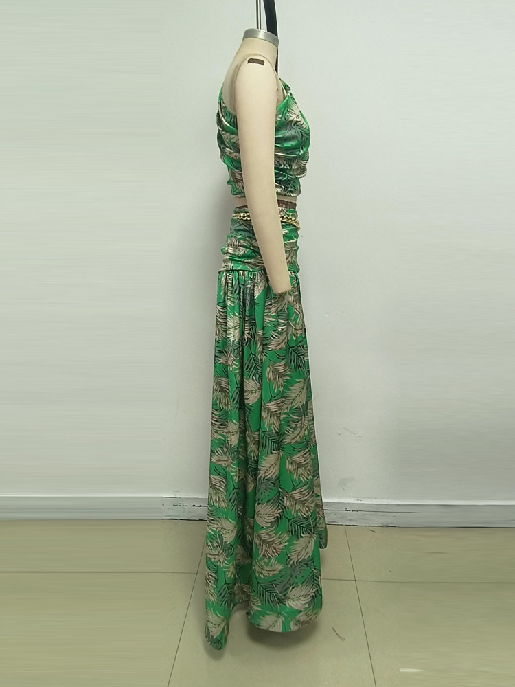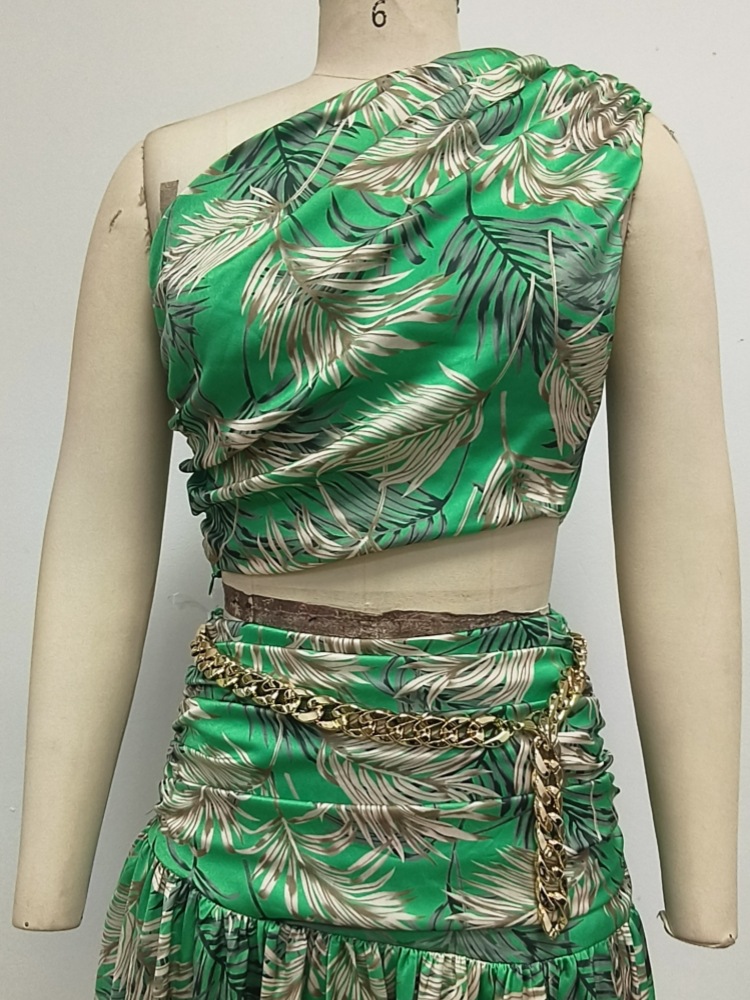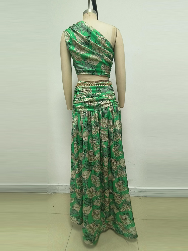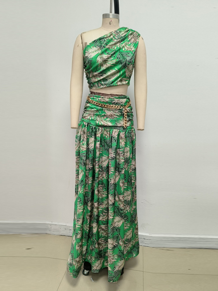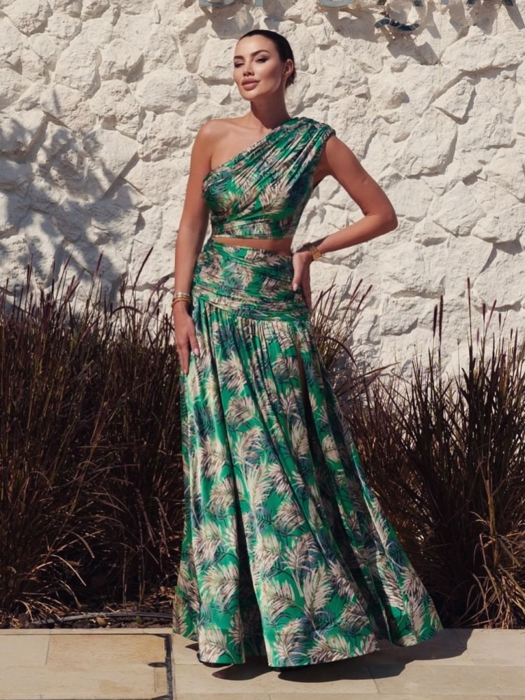 크로스보더 리조트 스타일 원 숄더 투피스 하이웨이스트 슬릿 롱 스커트 이브닝 파티 슈트 스커트 여름 요정 스타일스토어 가기