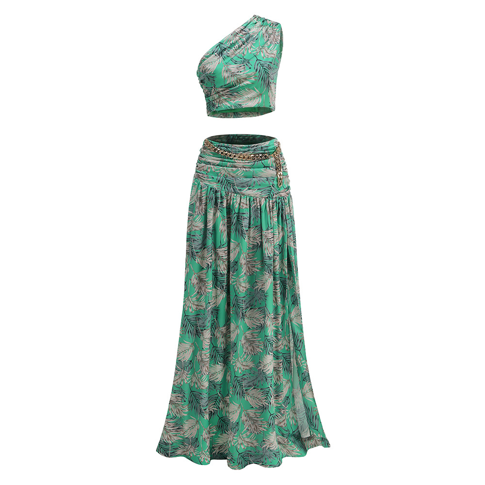 크로스보더 리조트 스타일 원 숄더 투피스 하이웨이스트 슬릿 롱 스커트 이브닝 파티 슈트 스커트 여름 요정 스타일