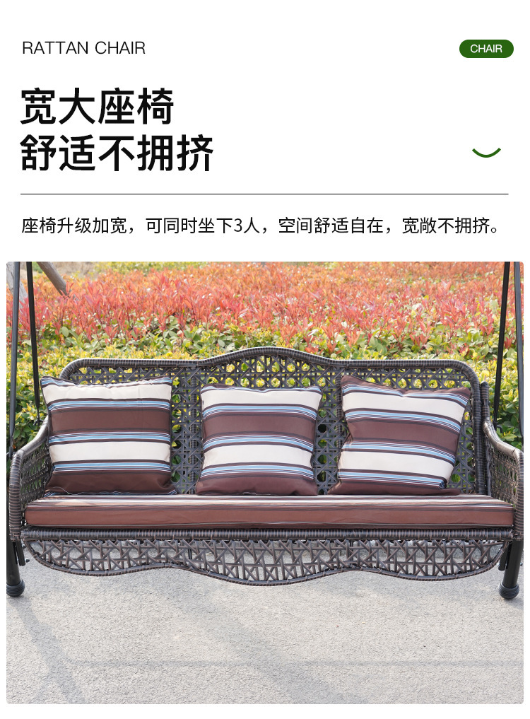 • 아이스 커피 3인용 그네 - 차 트레이 [어닝] 포함 - 강화 및 두꺼워짐 - 무료 쿠션 꽃
