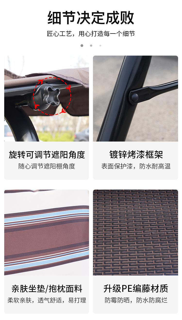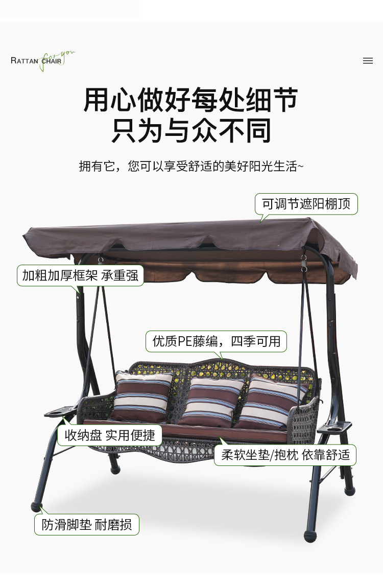 • 아이스 커피 3인용 그네 - 차 트레이 [어닝] 포함 - 강화 및 두꺼워짐 - 꽃 등나무 램프 포함