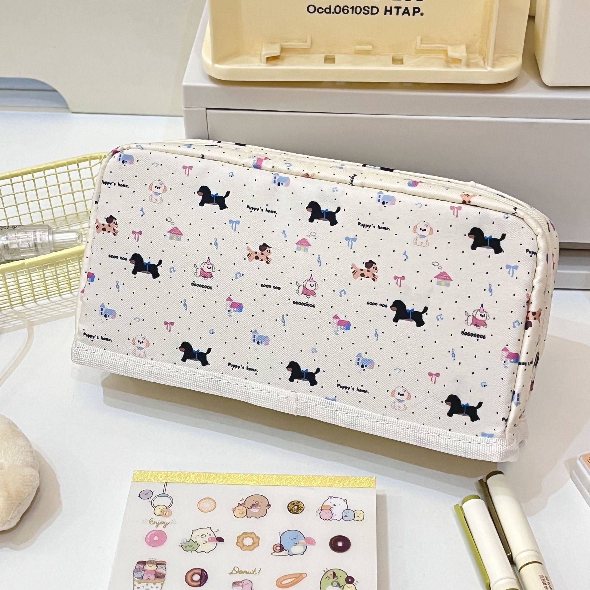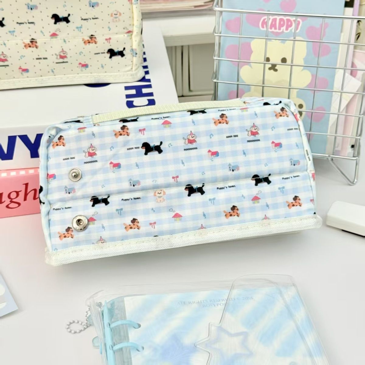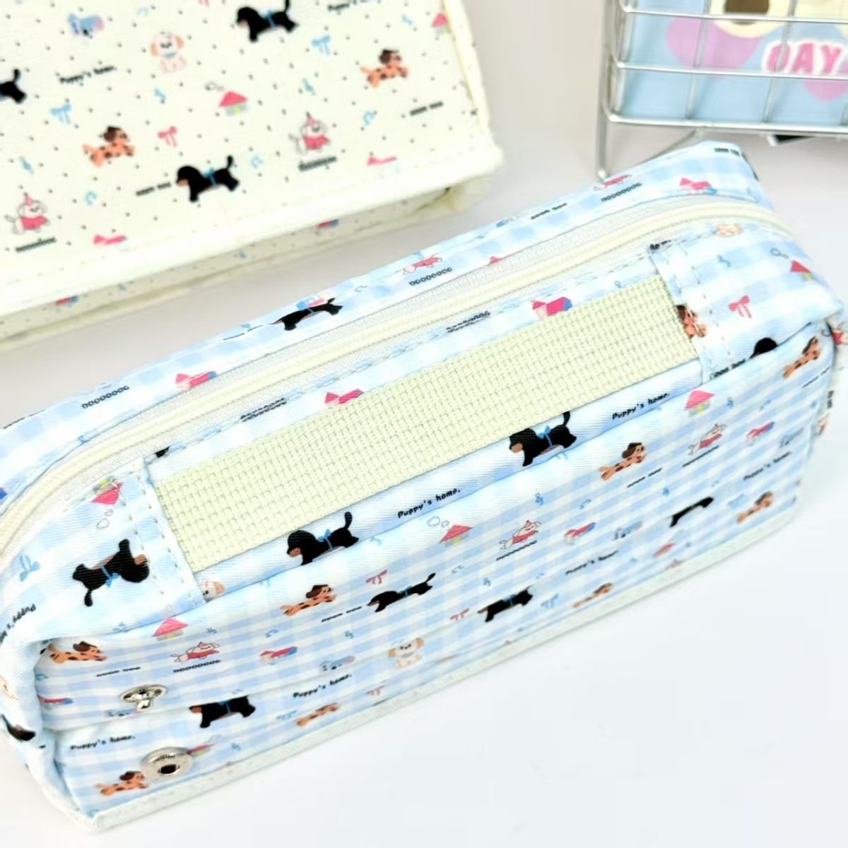 샤오홍슈와 같은 체크무늬 닥스훈트 강아지 필통, 작고 신선하고 고급스러운 심플한 필통, 통백 필통