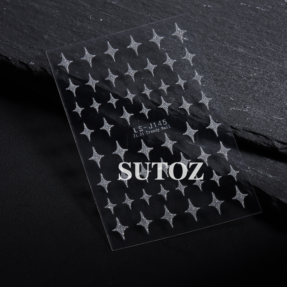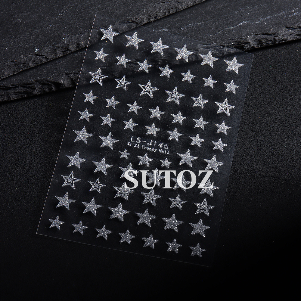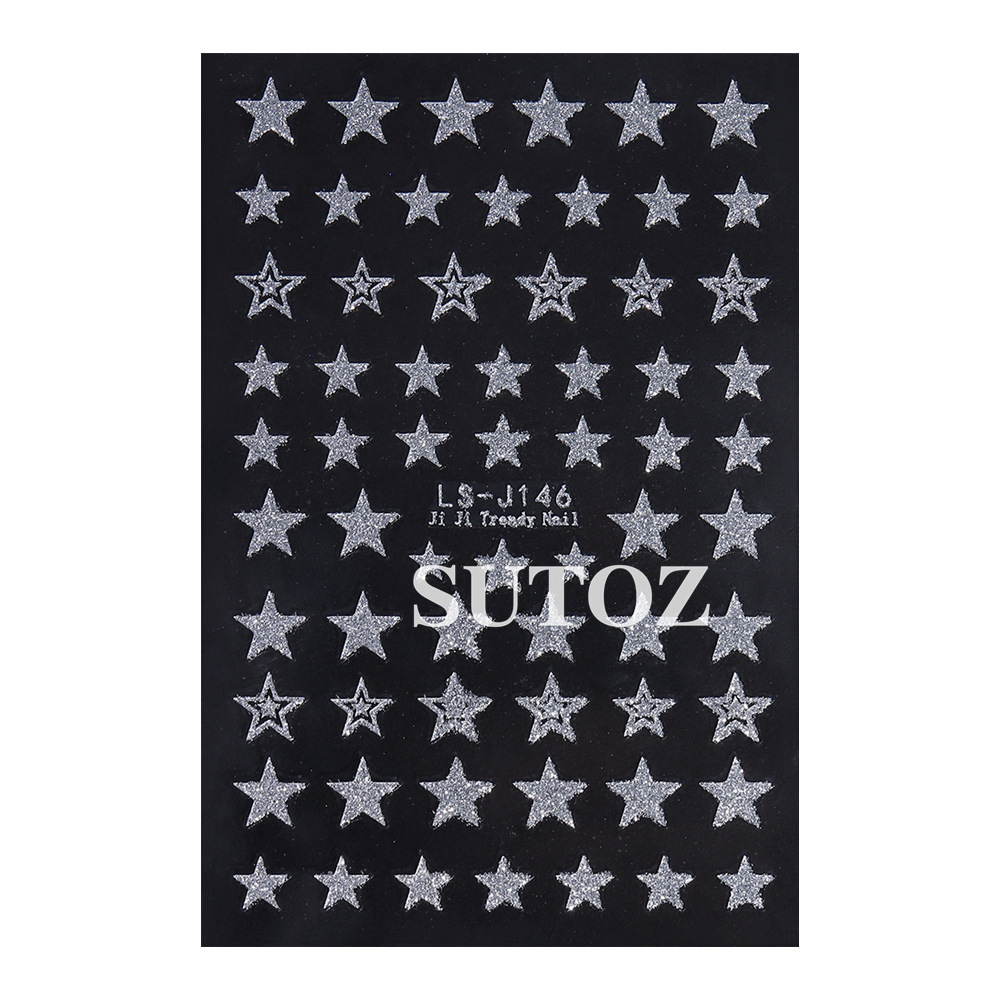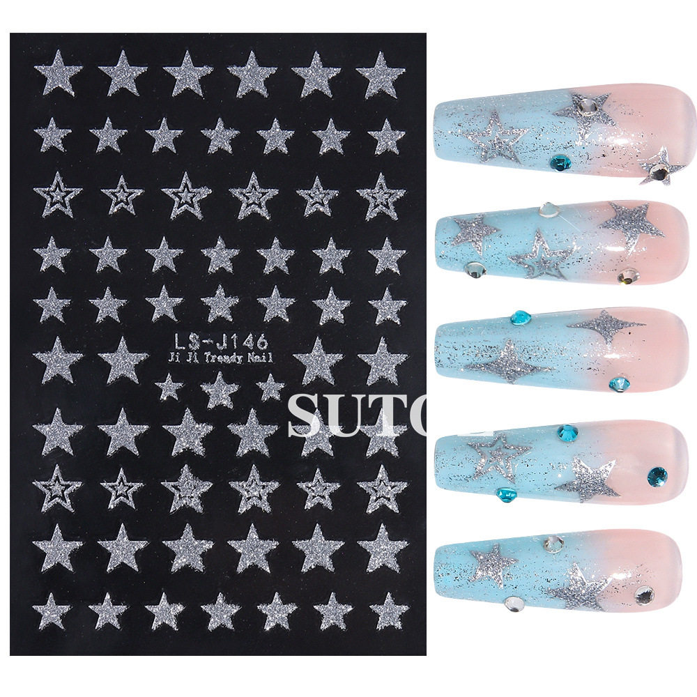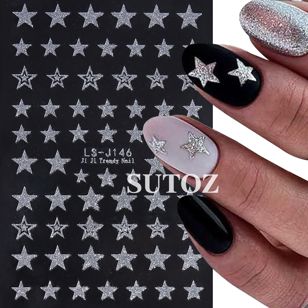Pingxixi 핫 네일 아트 스티커 달콤한 멋진 뜨거운 소녀 실버 반짝이 네개 별 다섯개 별 네일 접착 스티커