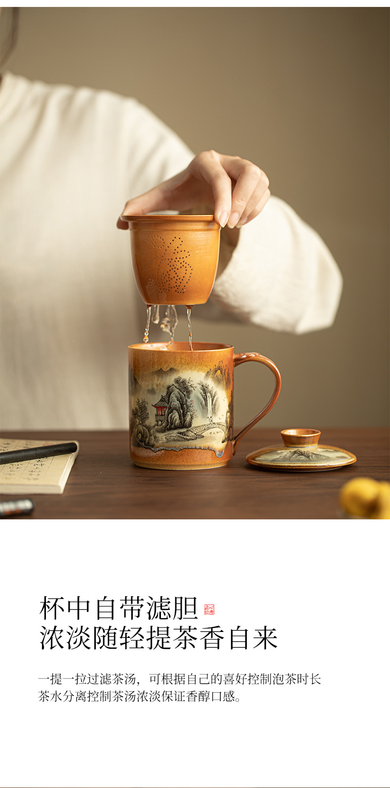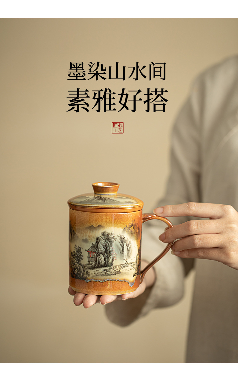 중국 스타일 장작 산수 사무실 컵 티 컵 머그잔 세라믹 차 세트 차 마시는 컵 홈 오피스 선물 상자스토어 가기