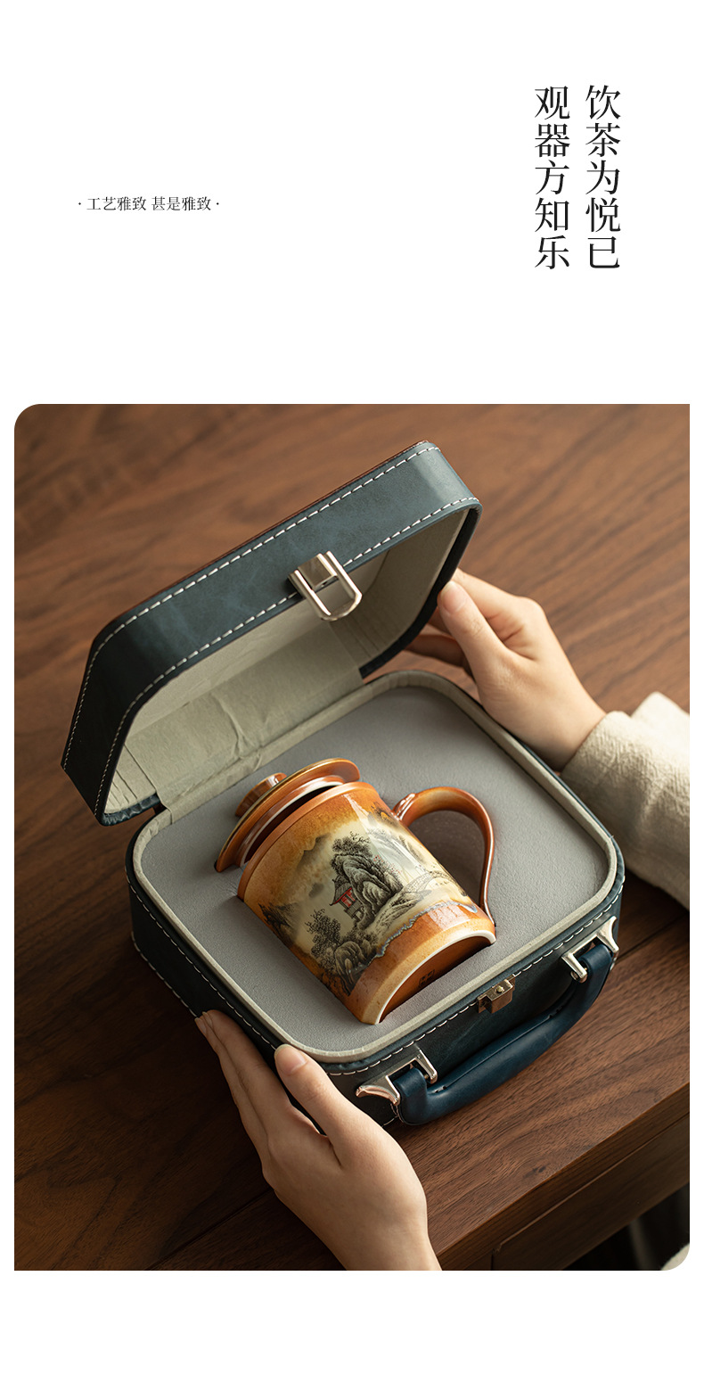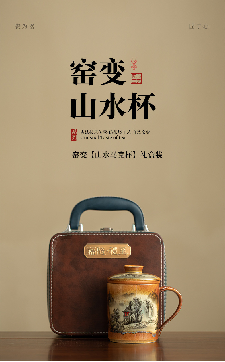 중국 스타일 장작 산수 사무실 컵 티 컵 머그잔 세라믹 차 세트 차 마시는 컵 홈 오피스 선물 상자