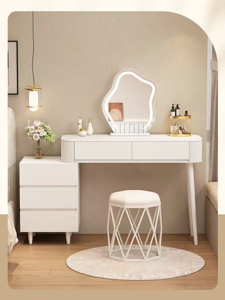 심플한 흰색 화장대, 침실, 심플한 소형 화장대, 가벼운 럭셔리, 와비사비 크림 스타일 화장대, 국경 간 도매