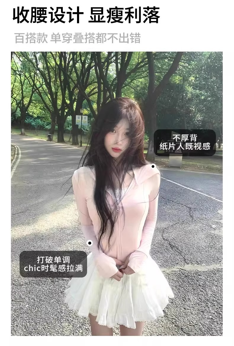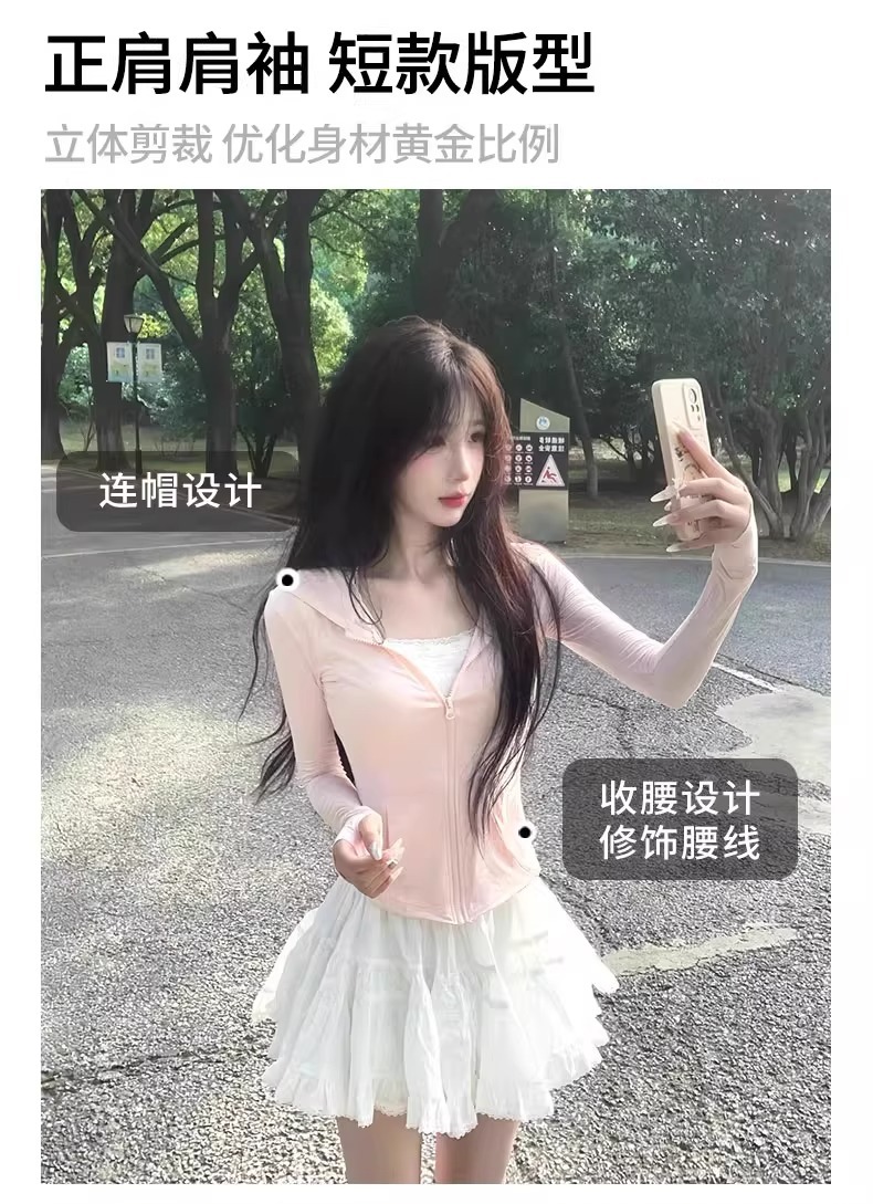• 슬림핏 자외선 차단 후드 밀크 살구 컬러