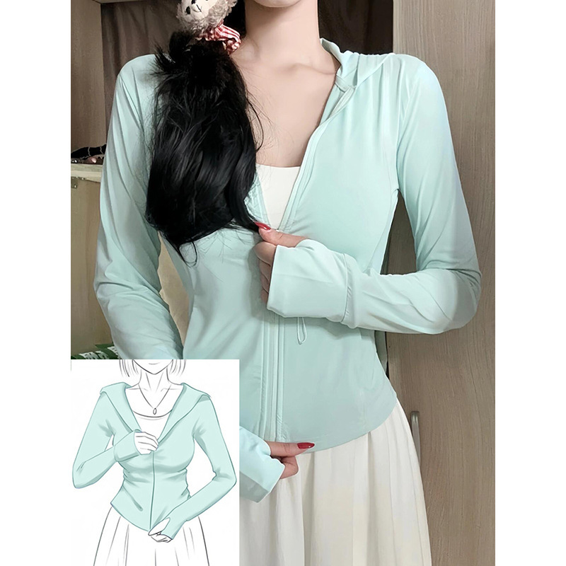 • 슬림핏 자외선 차단 후드 말차 컬러 의류