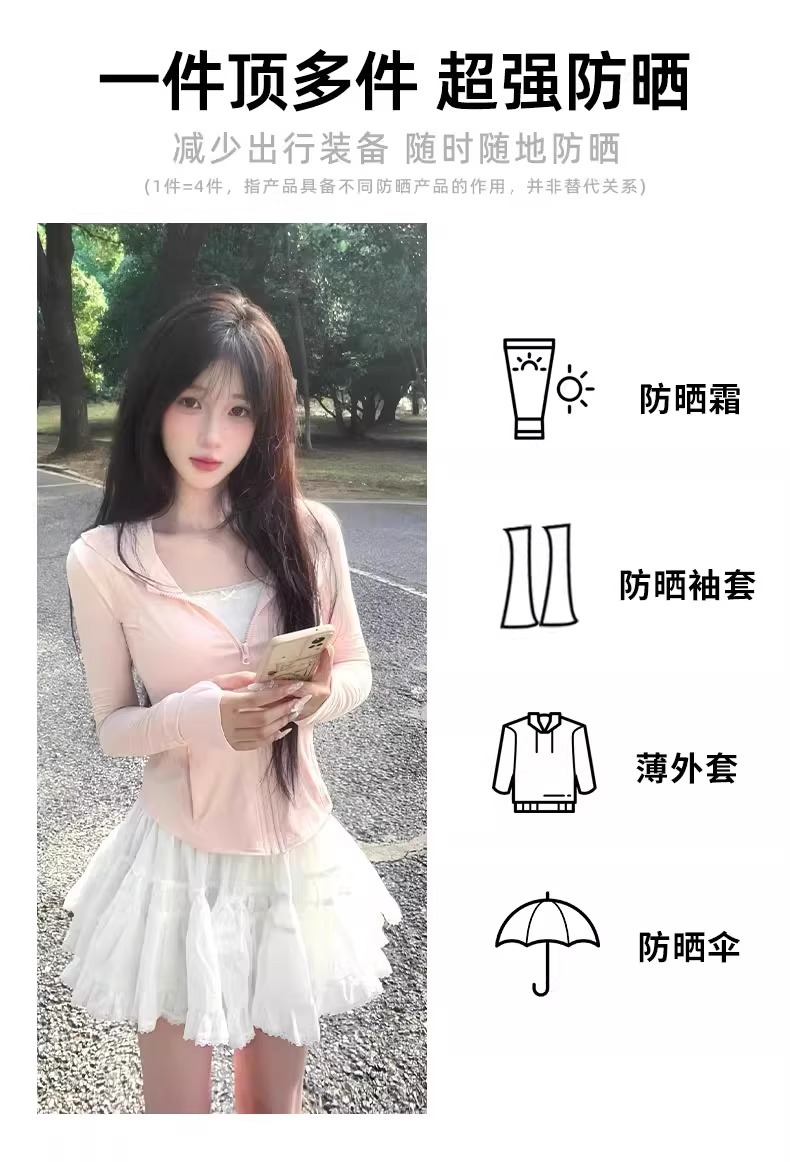 • 라이트 살구 스탠드 칼라 자외선 차단 의류