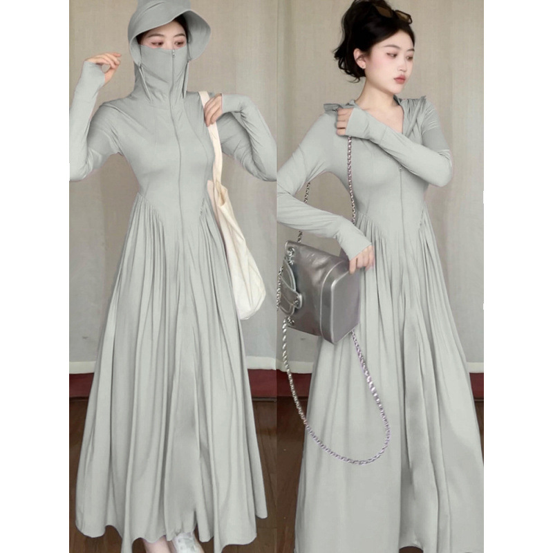 • 슬림핏 자외선 차단 후드 그레이 의류