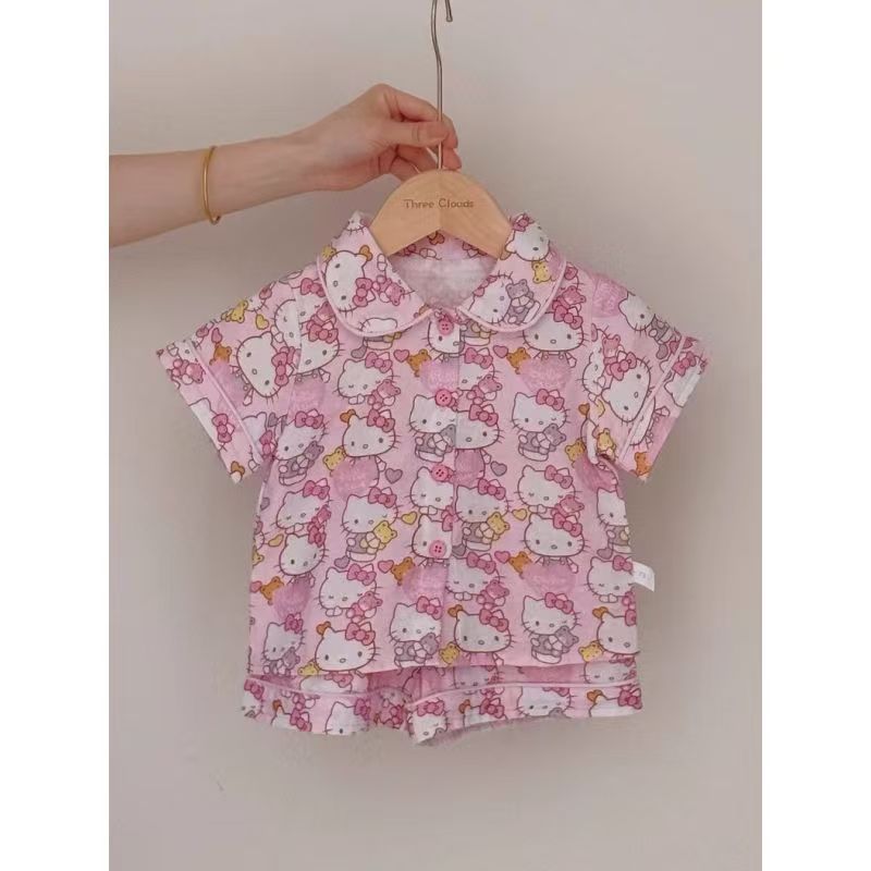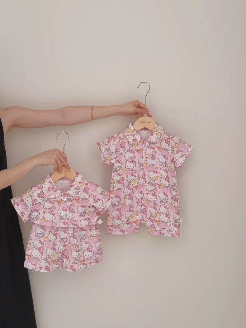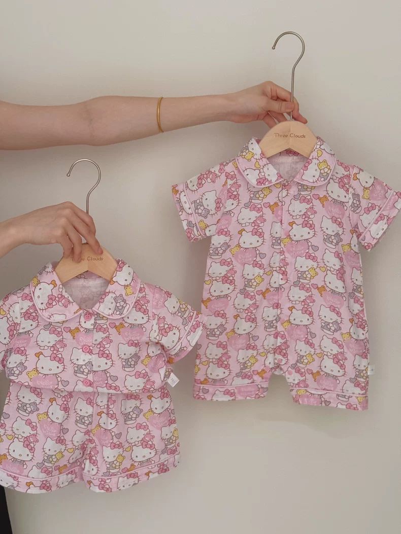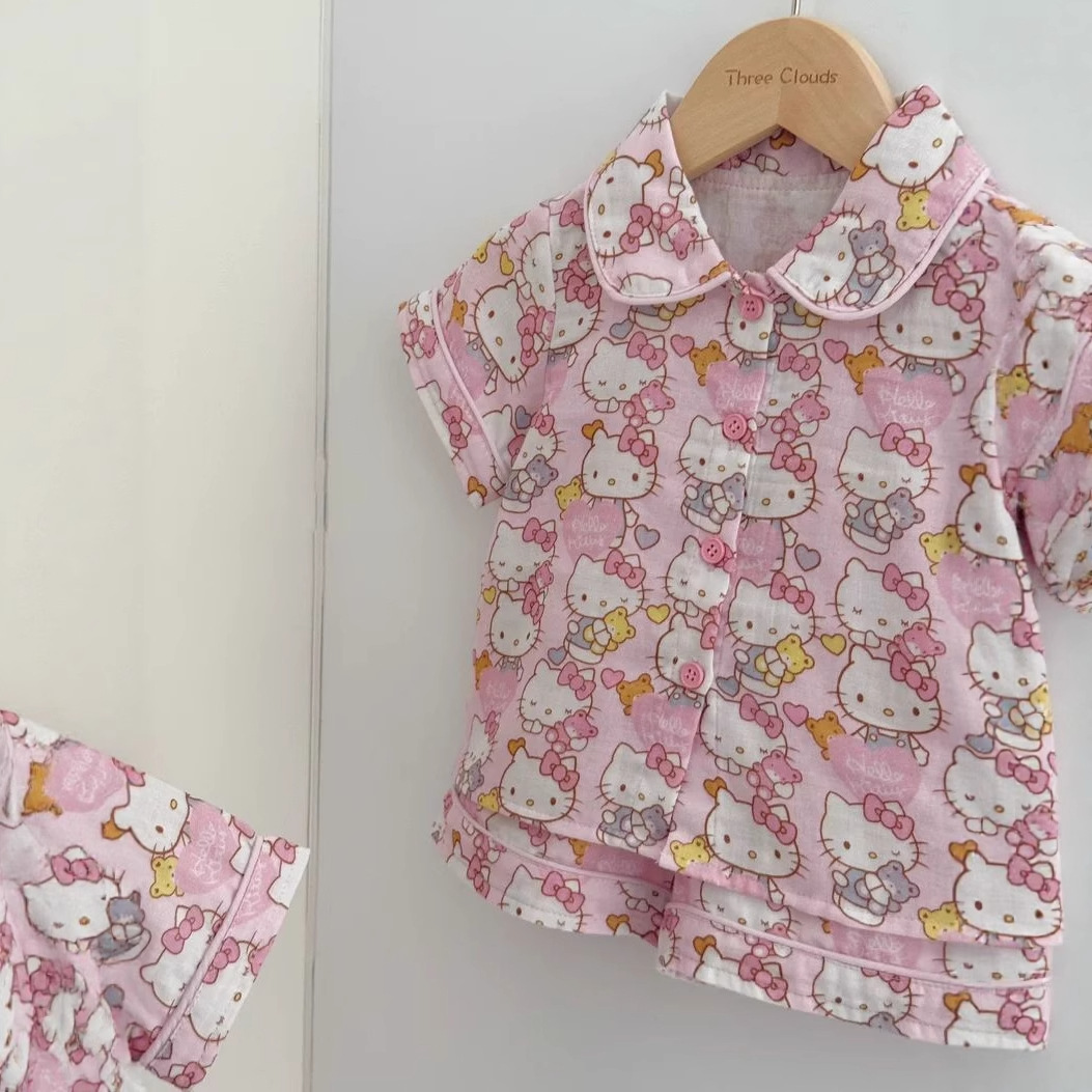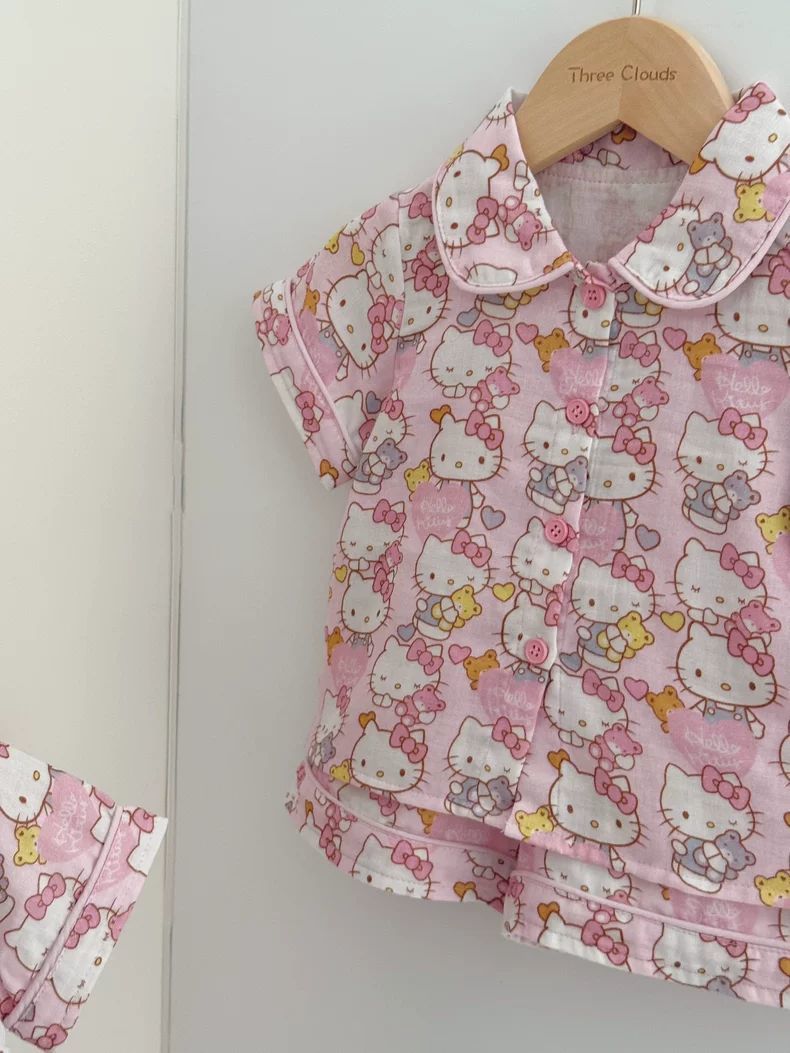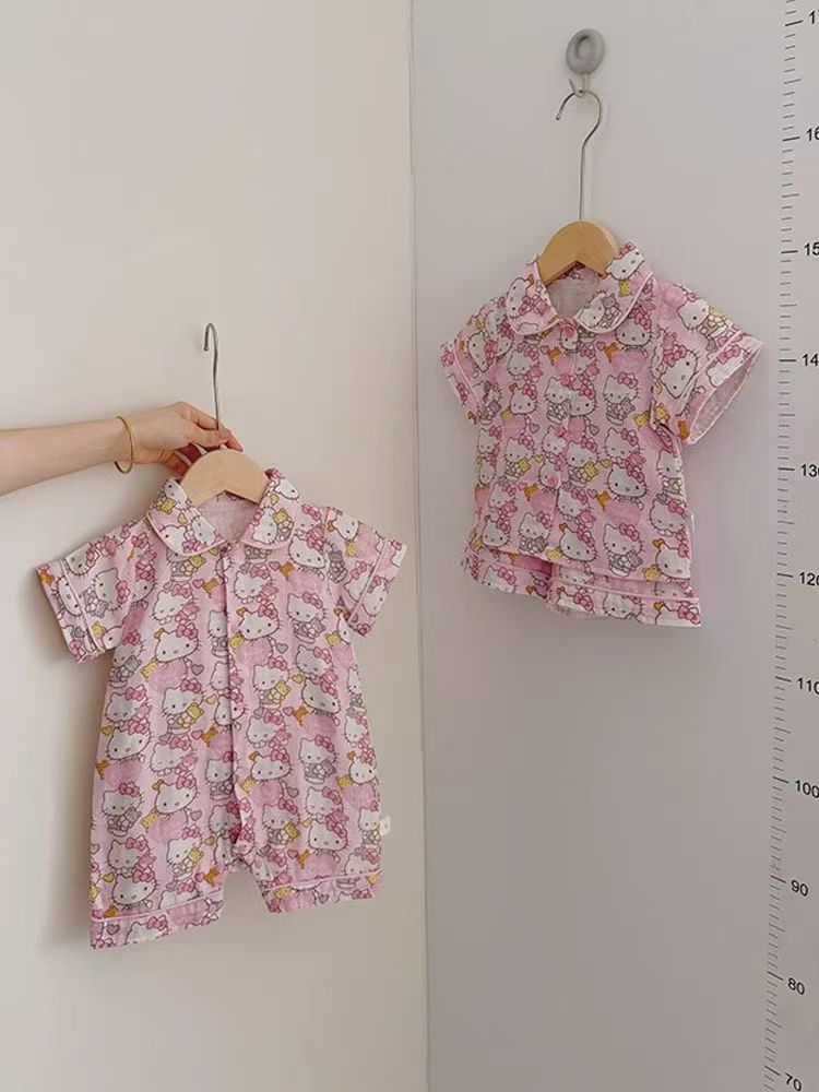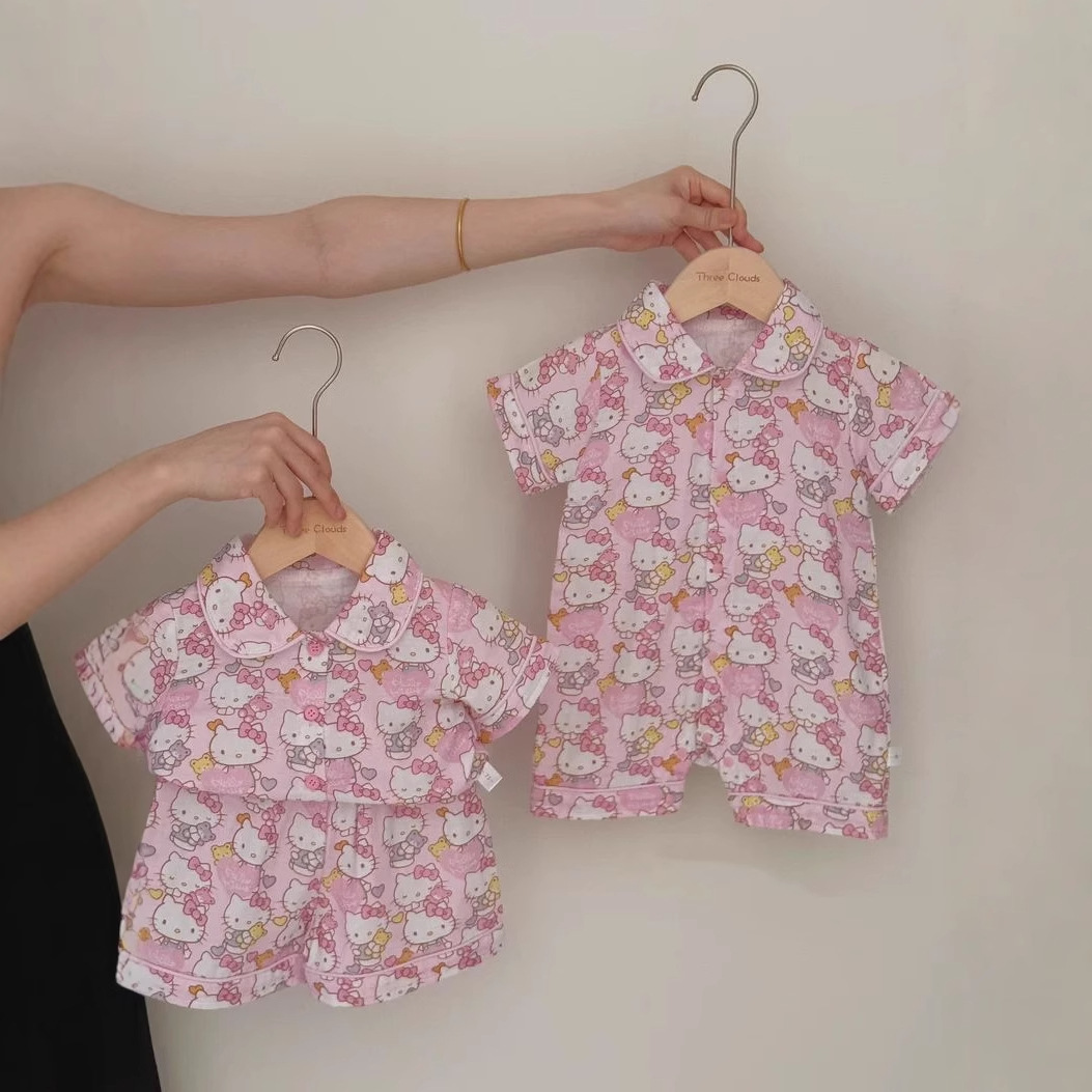 2025 새로운 여름 아기 옷 어린이 귀여운 고양이 반팔 아기 소녀 가정 의류 잠옷 투피스 양복스토어 가기
