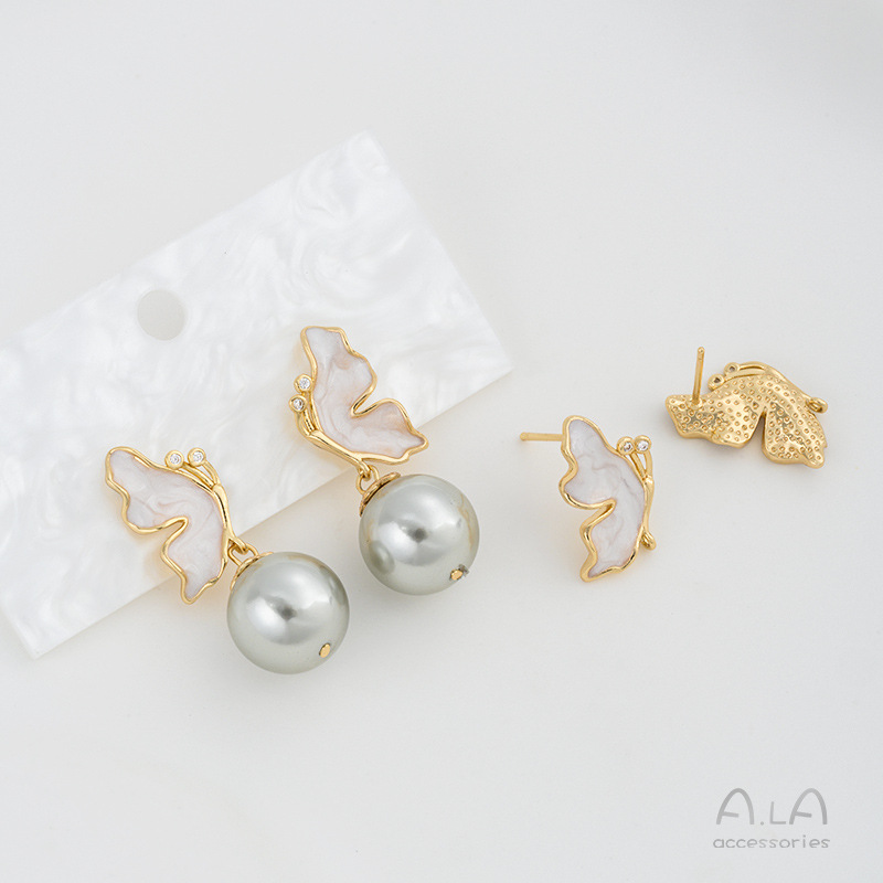 전기 도금 14K 금도금 오일 드롭 요정 나비 귀걸이 925 실버 바늘 diy 수제 귀걸이 귀 보석 재료