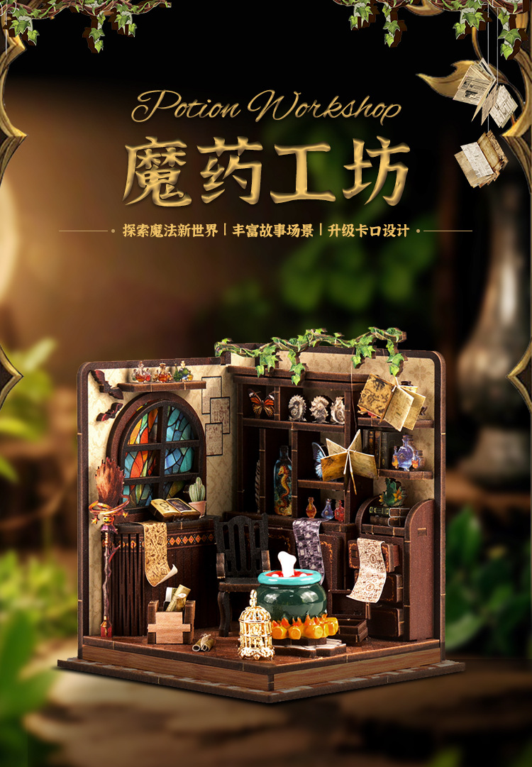 약제공방 모델 하우스 미니어처 장면 장식품 크로스보더 드롭쉬핑 DIY 캐빈 아트 하우스 조립 소형 하우스