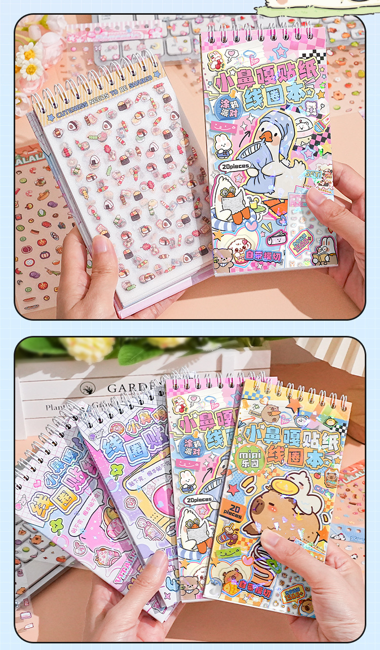 오리지널 Xiaoniuga 스티커 코일 북, 고급스러운 레이저 컷팅 프리 스티커 북, 학생 DIY 핸드북 재료 북스토어 가기