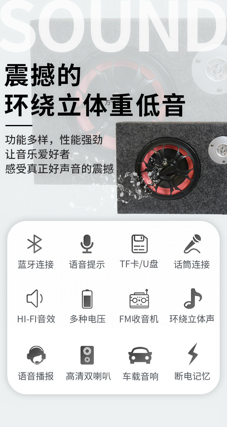 초박형 자동차 오디오 자동차 서브 우퍼 12v24v 수정 된 대용량 트럭 라디오 블루투스 스피커 홈스토어 가기