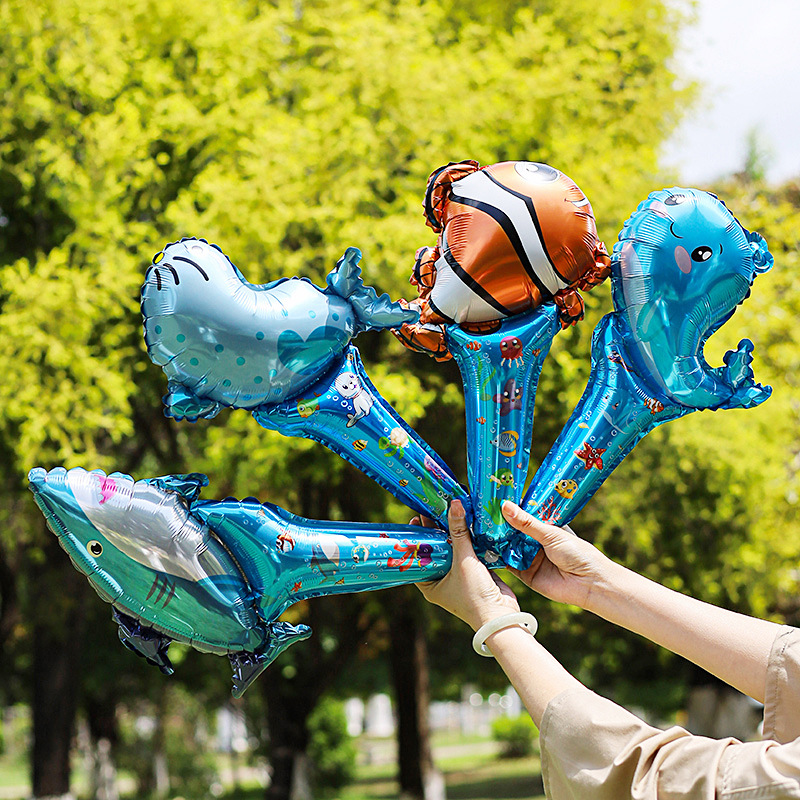 국경 간 휴대용 타악기 우주 공룡 테마 어린이 생일 공주 만화 알루미늄 필름 풍선을위한 작은 선물스토어 가기
