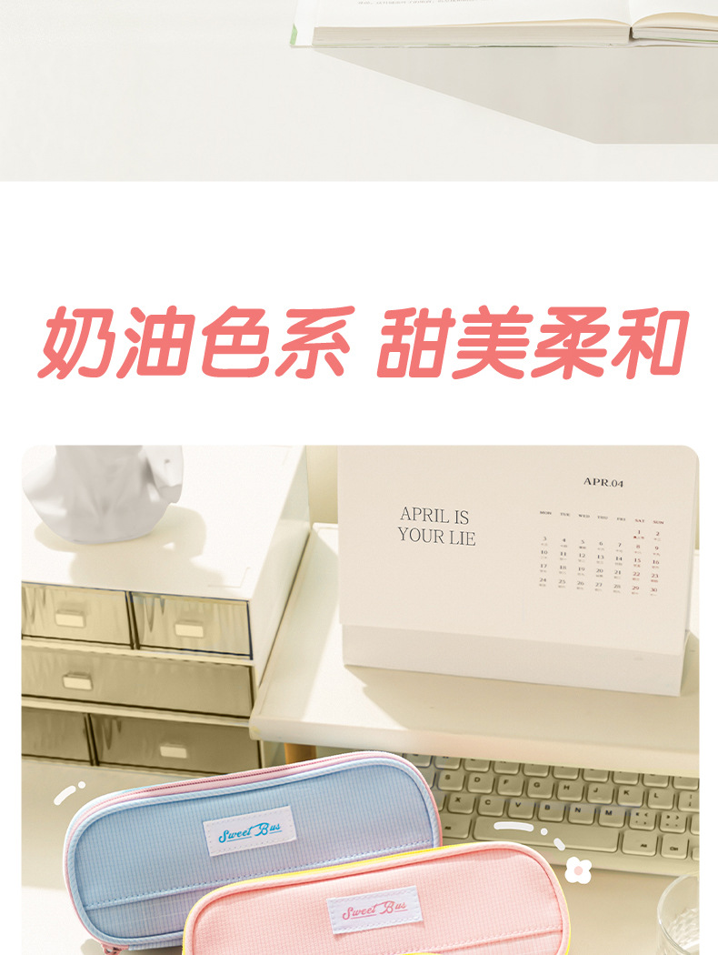 델리 66665G 스위트 버스 복합 다목적 필통 스위트 버스 필통 필통 소녀 크림