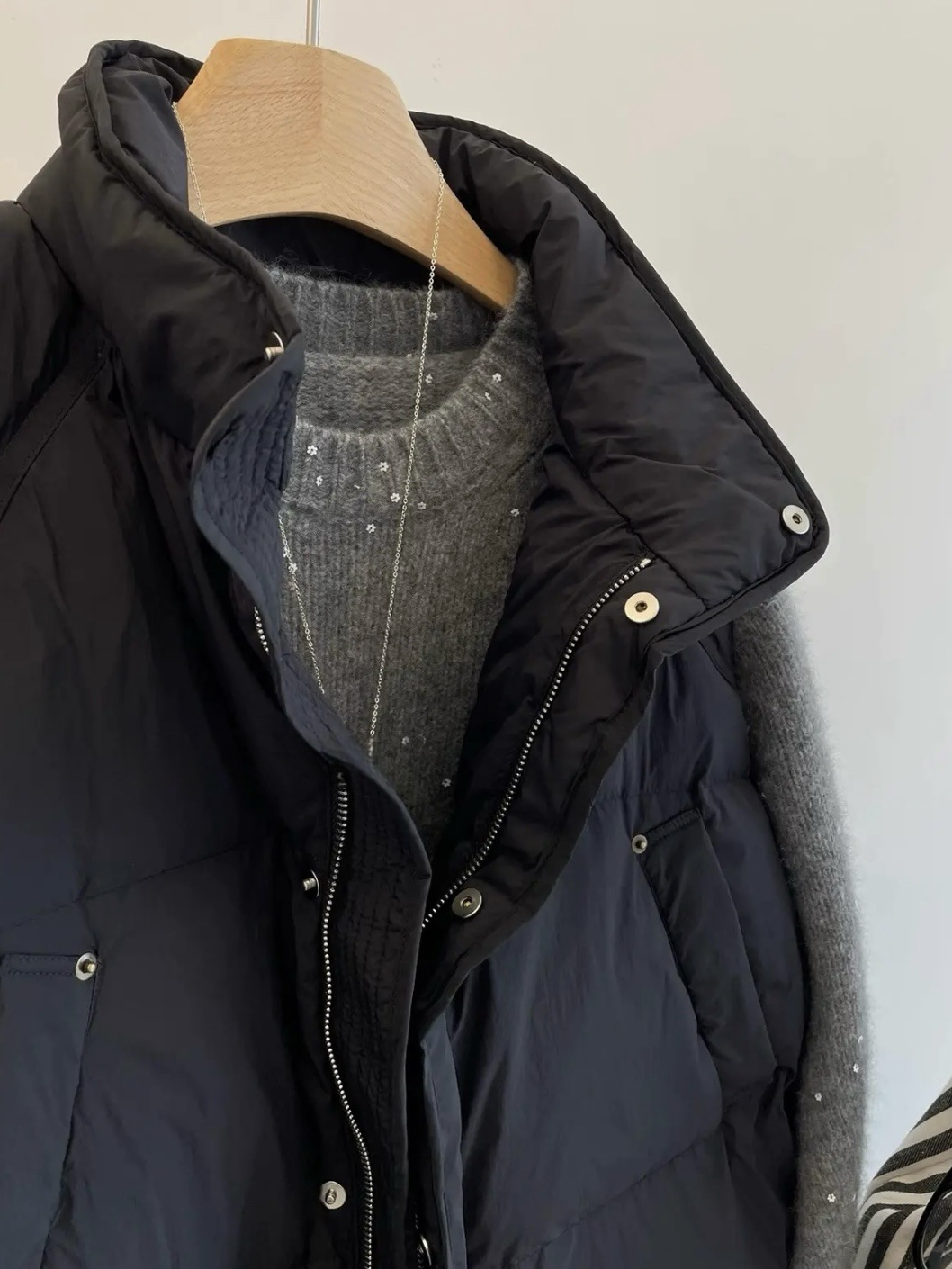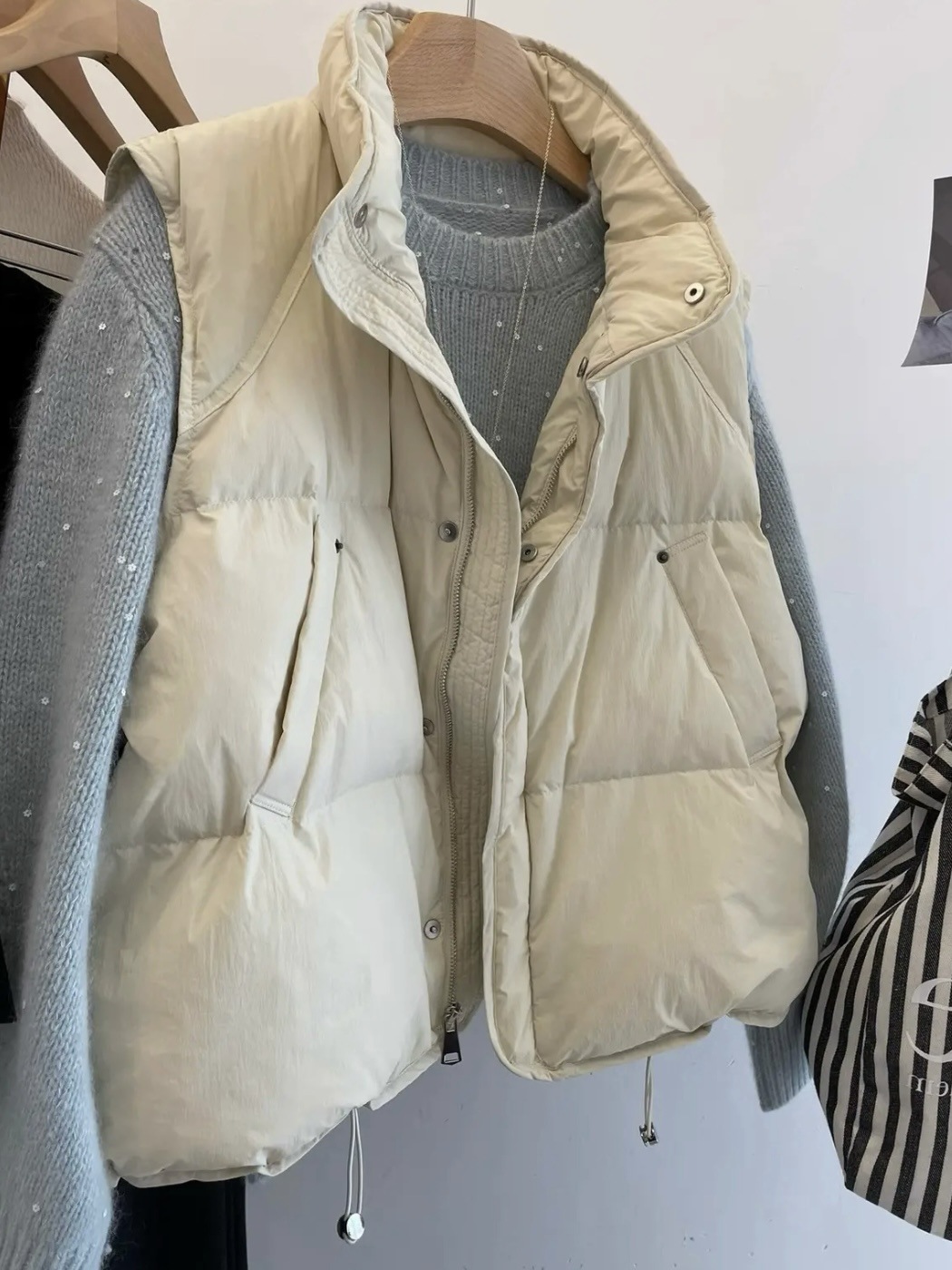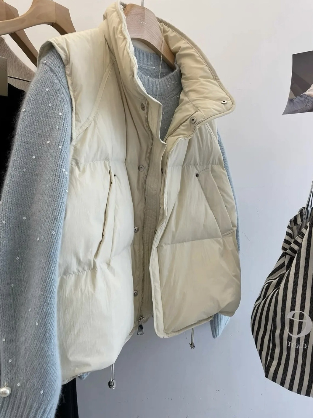 한국 스타일 일반 면화 두꺼운 조끼 탑 2025 겨울 새로운 스타일 조끼 재킷 여성 스탠드 칼라 느슨한 조끼 유행