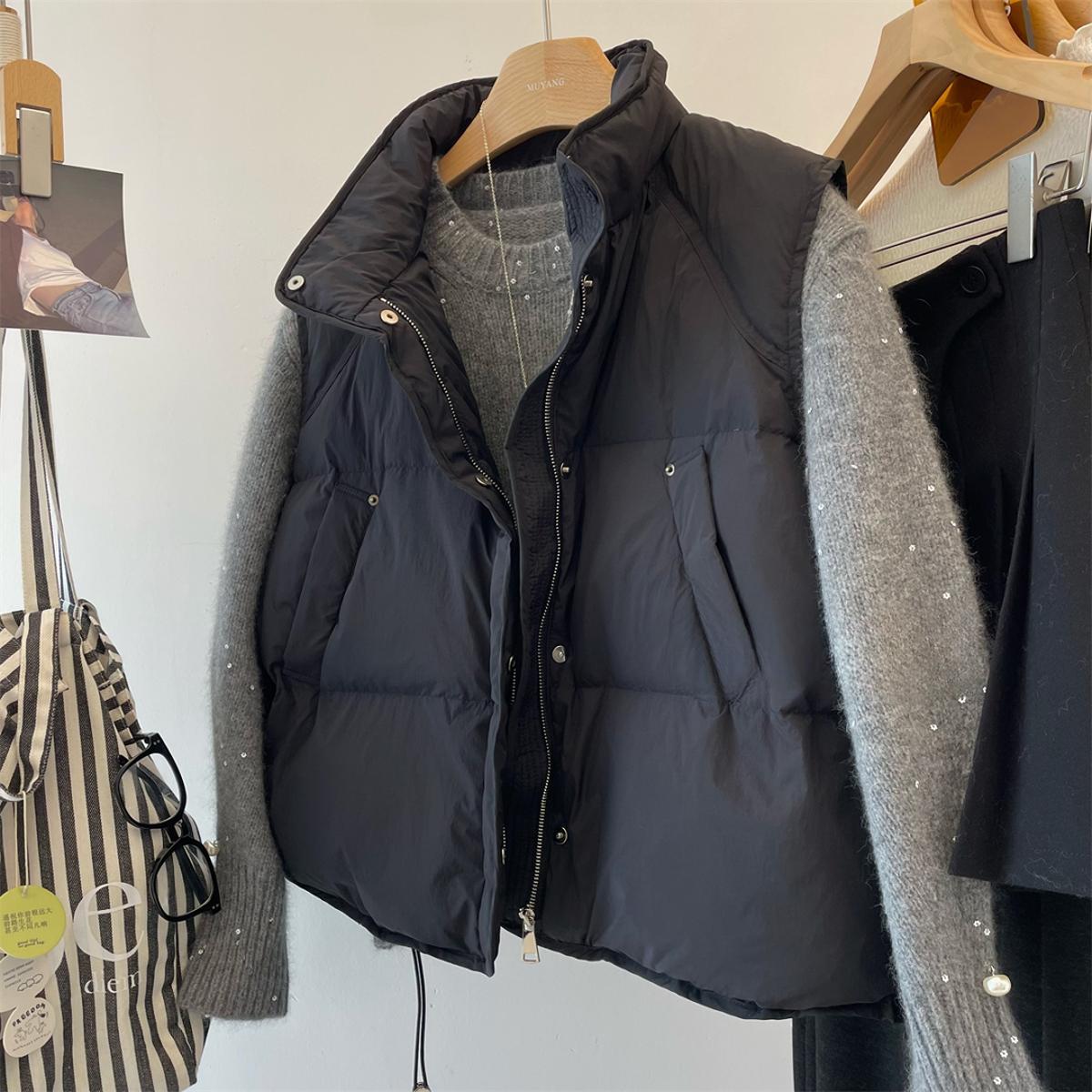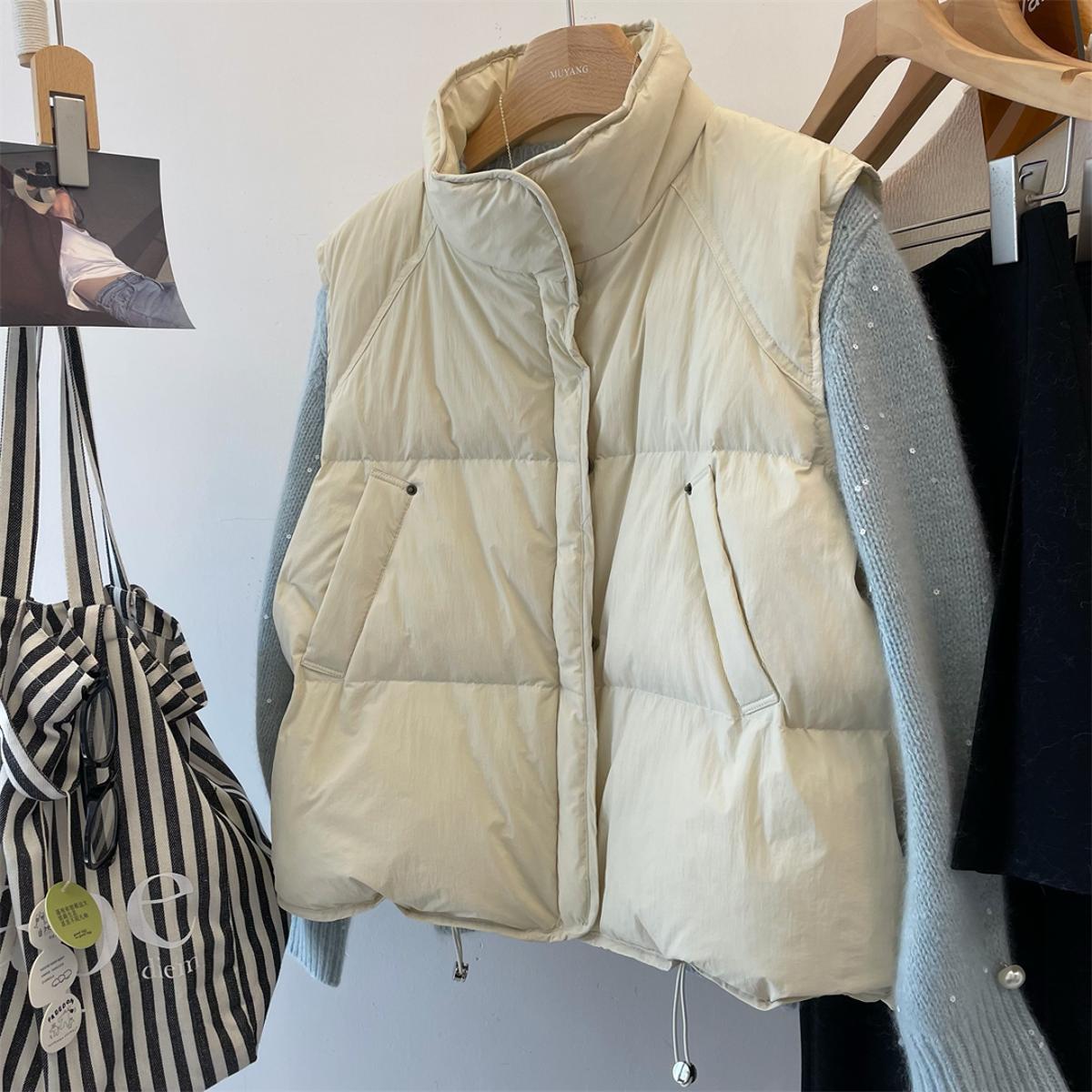 한국 스타일 일반 면화 두꺼운 조끼 탑 2025 겨울 새로운 스타일 조끼 재킷 여성 스탠드 칼라 느슨한 조끼 유행스토어 가기