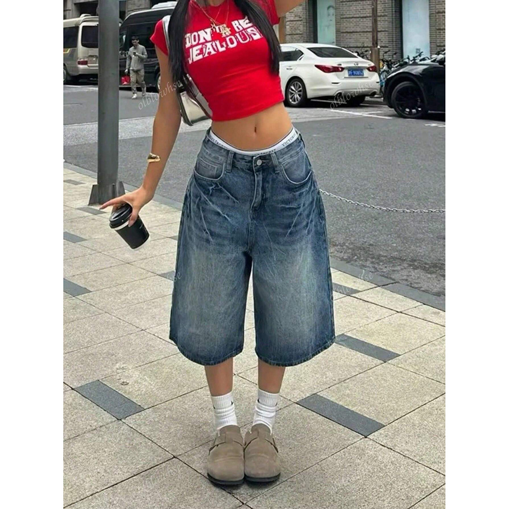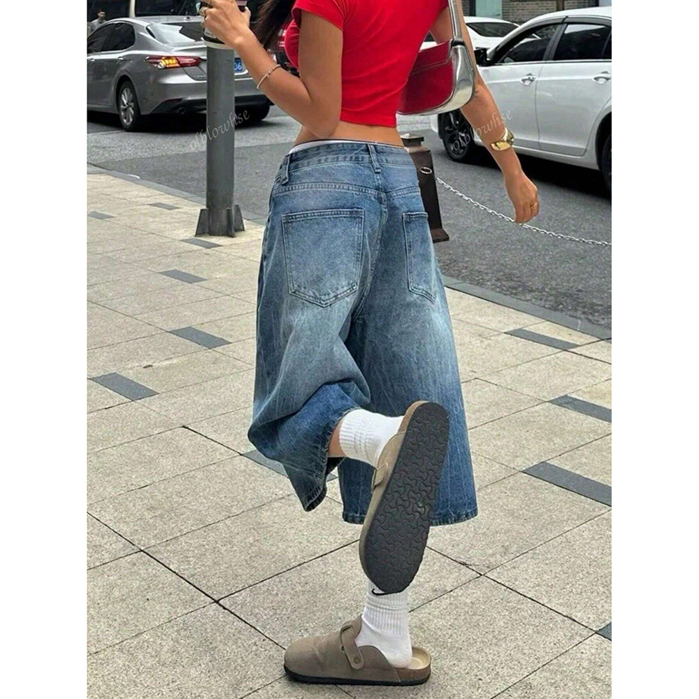 2025년 여름 신작 크로스보더 스트레이트 청바지 여성 아메리칸 하이 스트리트 레트로 루즈 드레이프 와이드 레그 크롭 팬츠스토어 가기