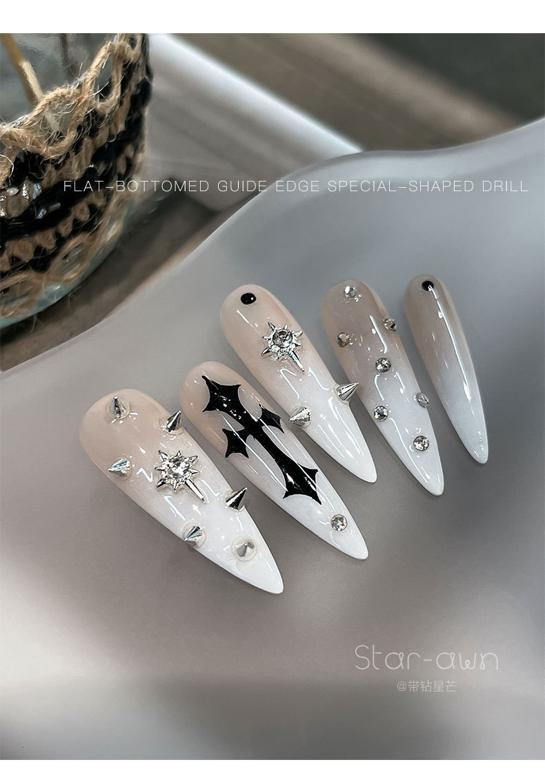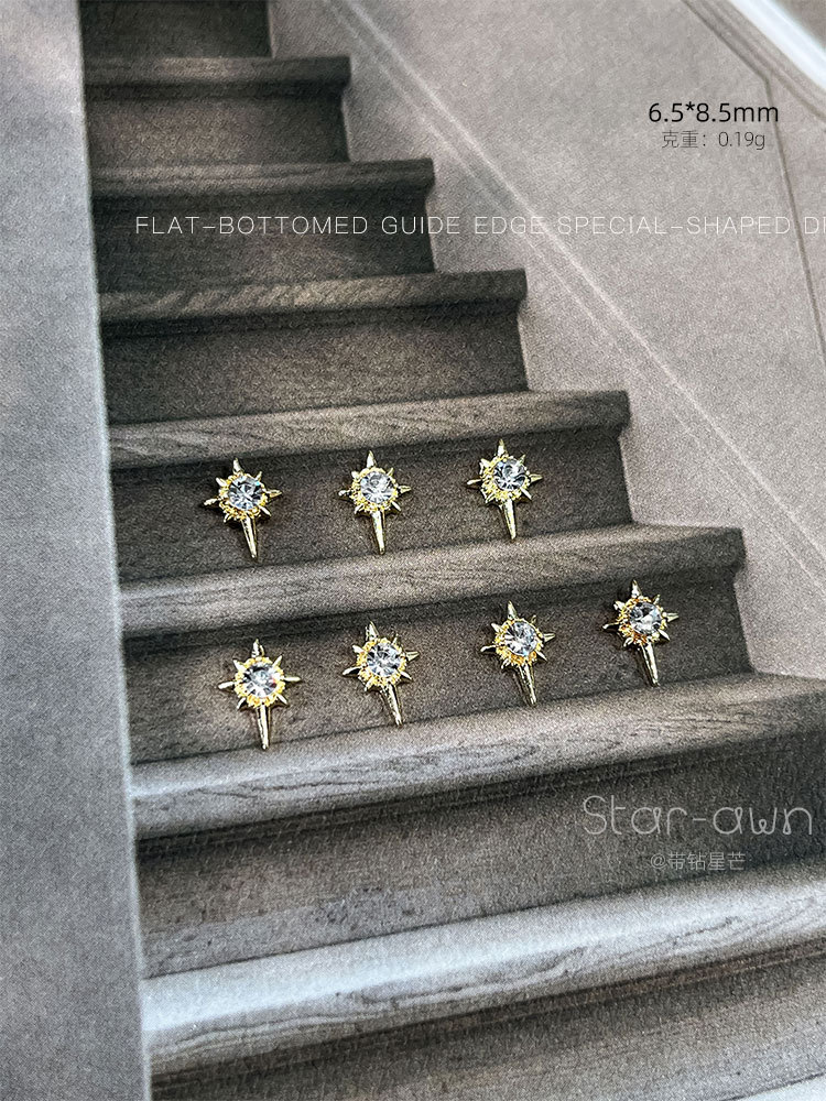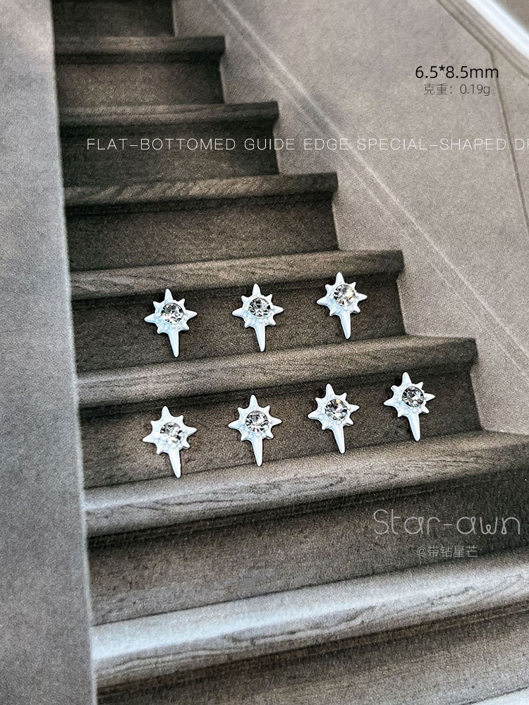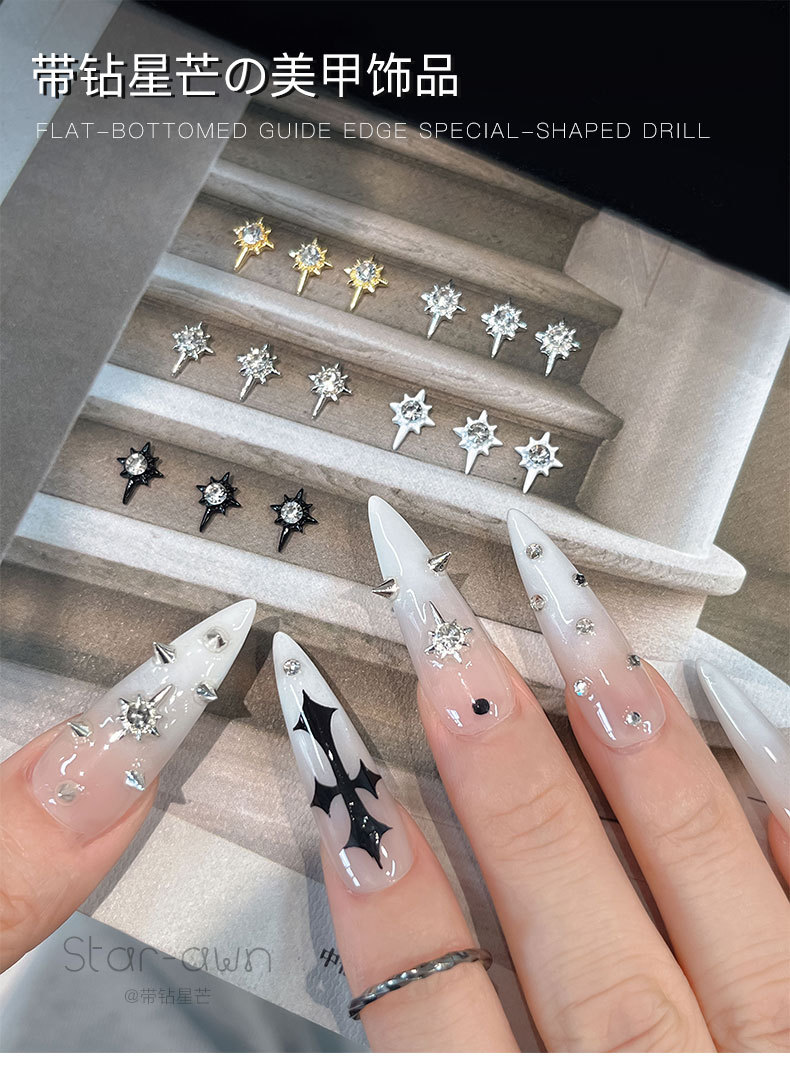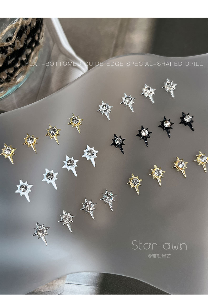인터넷 연예인 매니큐어 스타 합금 쥬얼리 달콤하고 시원한 핫 소녀 스타일 크로스 다이아몬드 깜박이는 네각형 스타 네일 다이아몬드 도매스토어 가기