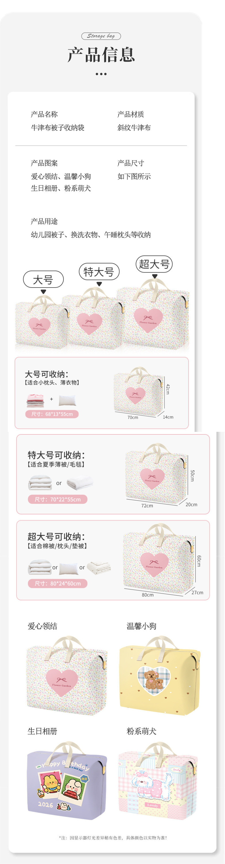 옥스포드 천 이불 보관 가방 수하물 이동 포장 가방 대용량 학생 기숙사 의류 이불 정리 가방스토어 가기