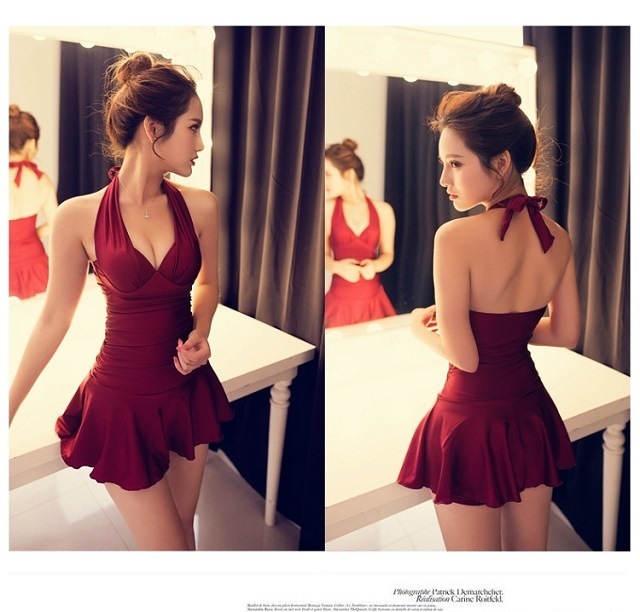 복부를 커버하고 슬림해 보이는 섹시하고 슬림한 여성 수영복, 보수적인 복각 온천 수영복스토어 가기