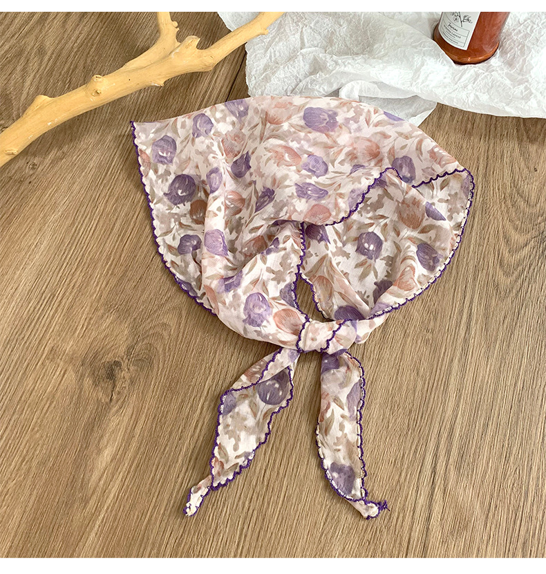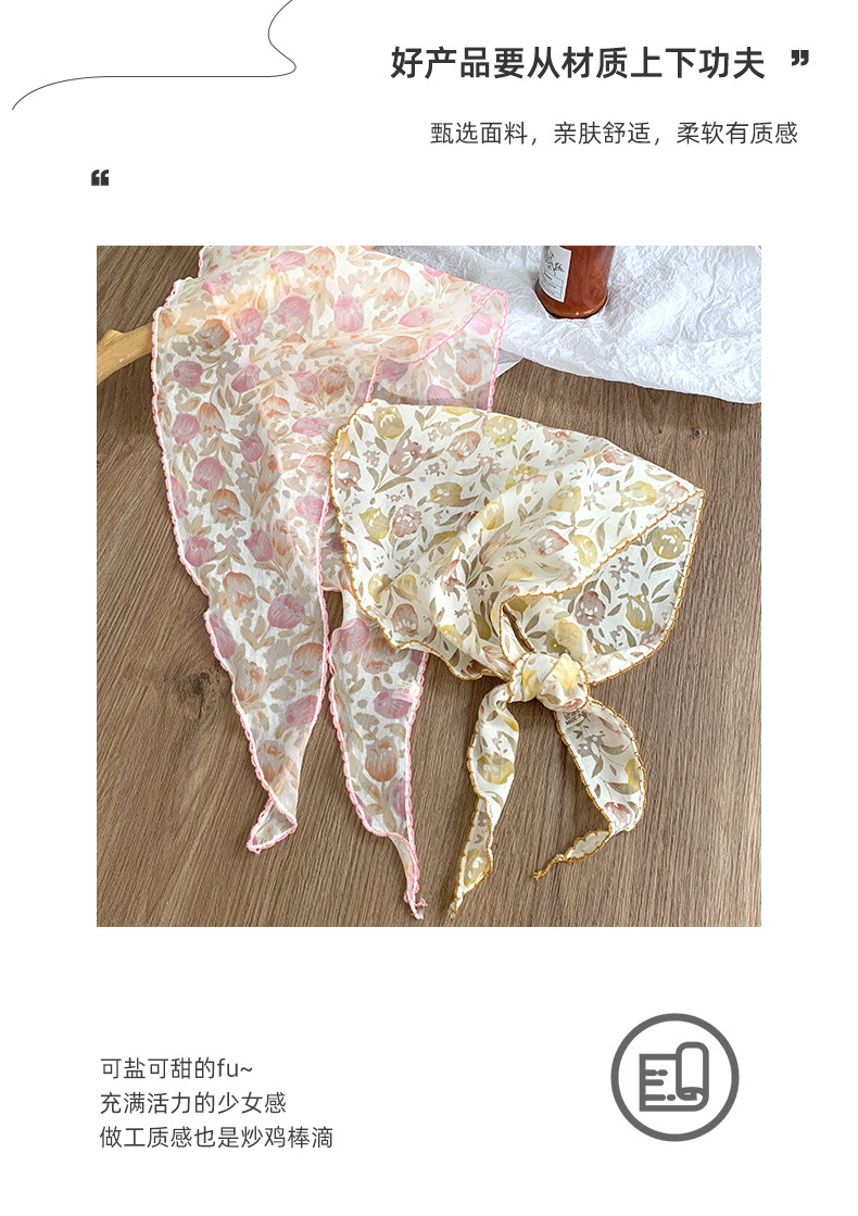 신선하고 달콤한 요정 스타일 곡선 가장자리 수출 일본과 한국 삼각 스카프 국경 간 인기 판매 장식 작은 스카프 실크 스카프 신제품