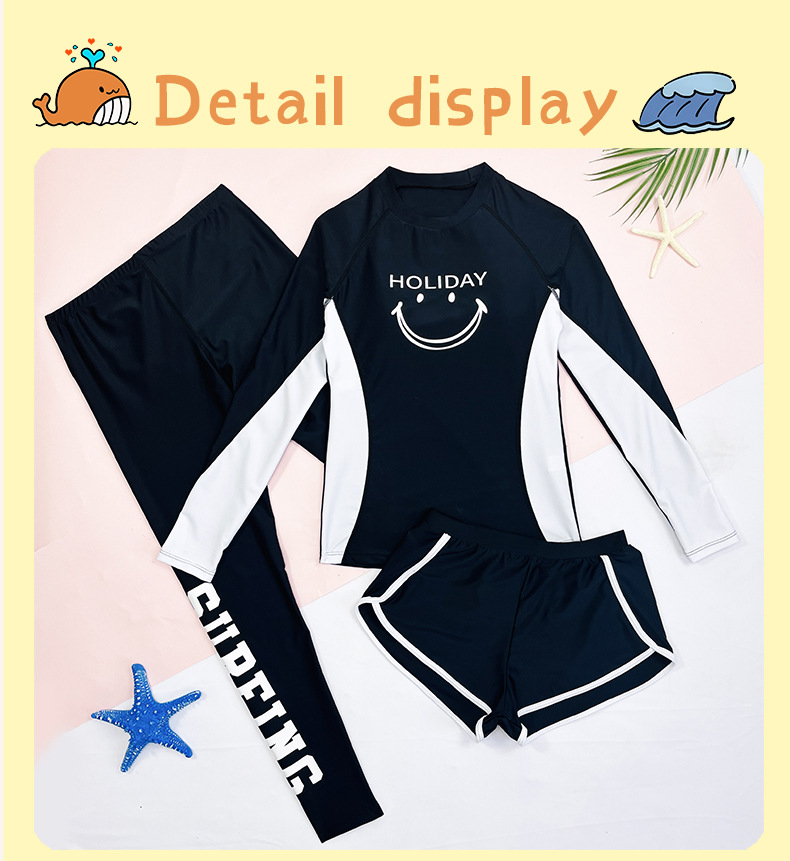 2025 새로운 여자 수영복 여자의 보수적인 긴팔 바지 3 피스 태양 보호 잠수복 중형 및 대형 어린이 수영복스토어 가기