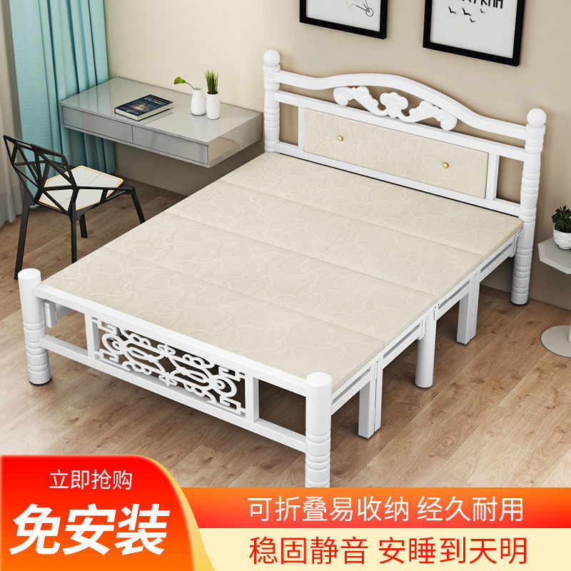접이식 침대 점심 시간 나무 보드 간단한 나무 보드 침대 싱글 더블 철 프레임 가정용 성인 1.12m 1.5m스토어 가기