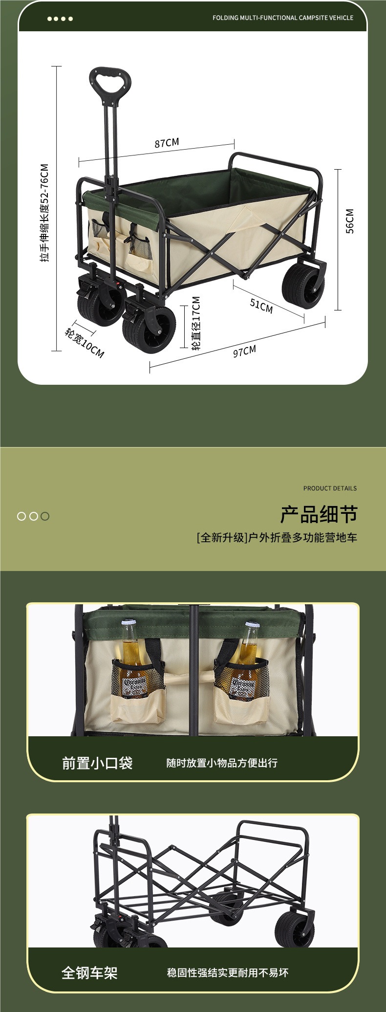 • 캠퍼밴 + 접이식 스톨 테이블 - 브레이크가 장착된 대형 오프로드 휠(카키색)