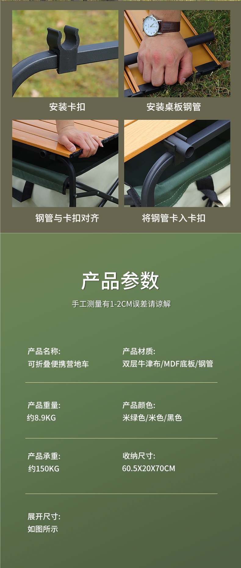 • 캠퍼밴 + 접이식 테이블 - 대형 트레일러 탱크 휠(카키색)