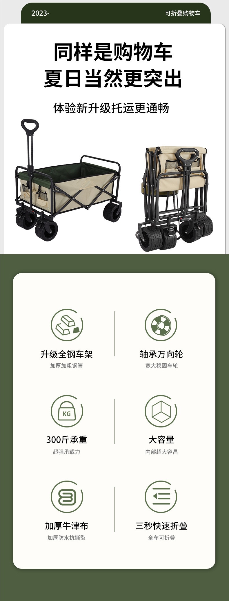 • 캠퍼밴 + 접이식 스톨 테이블 - 대형 트레일러 탱크 휠(카키색)