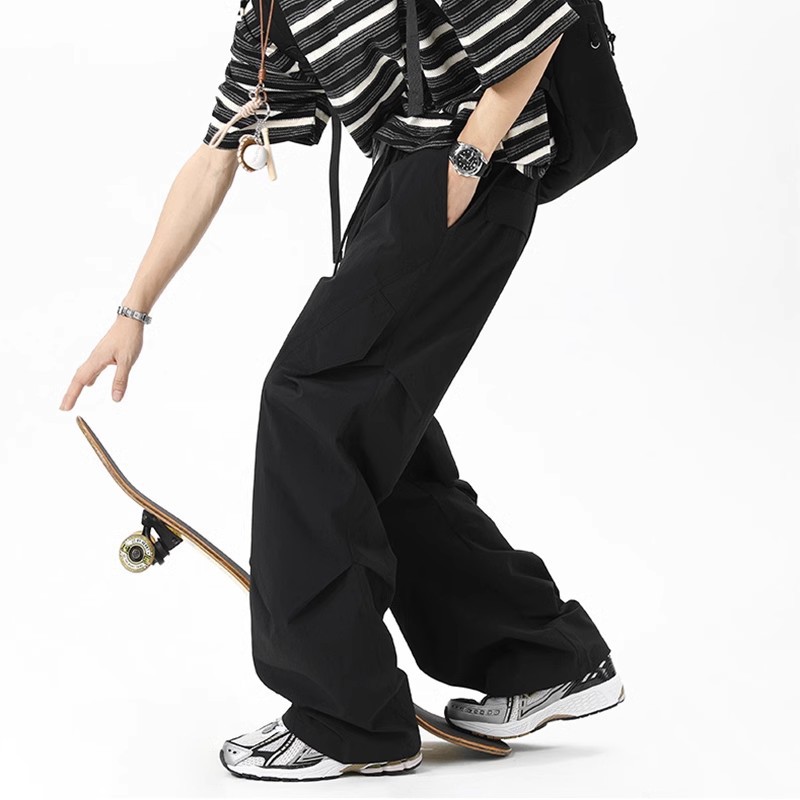 아메리칸 스타일 뉴 플리츠 파라트리퍼스 바지 남성 여름 얇은 루즈 스트레이트 와이드 레그 스포츠 속건 캐주얼 바지