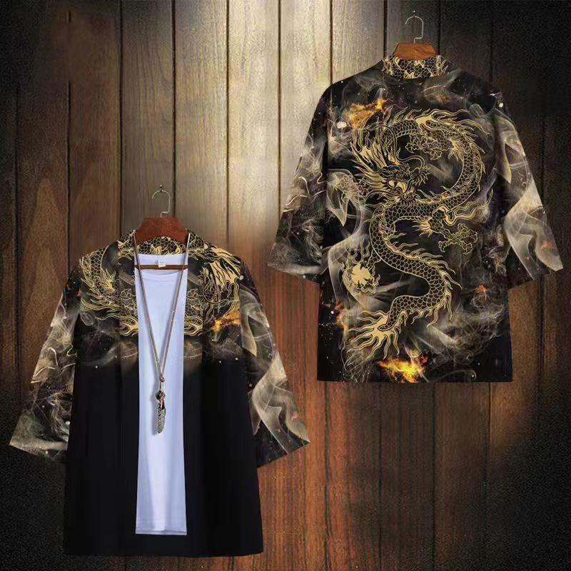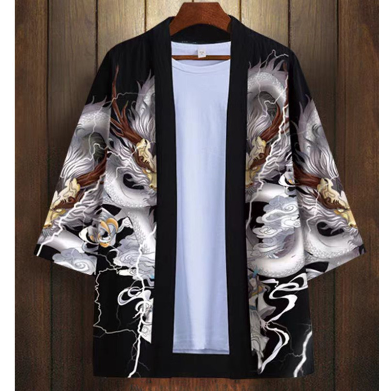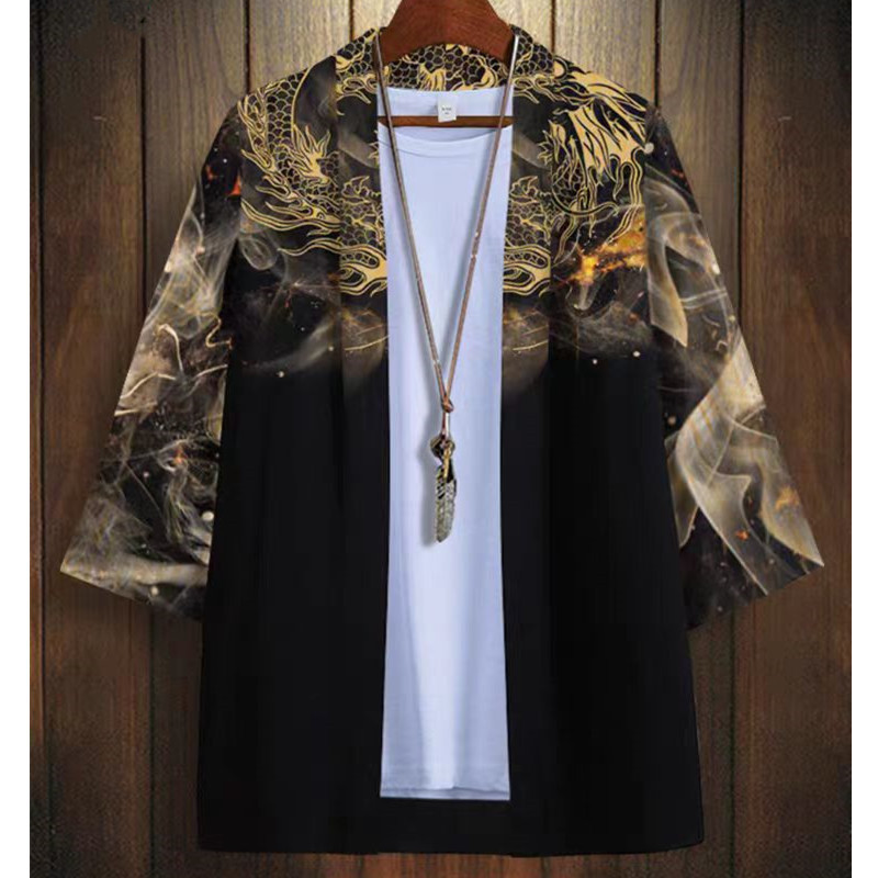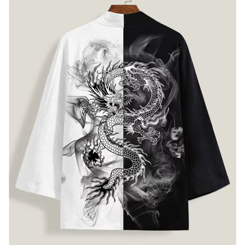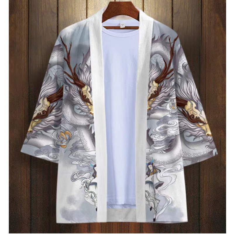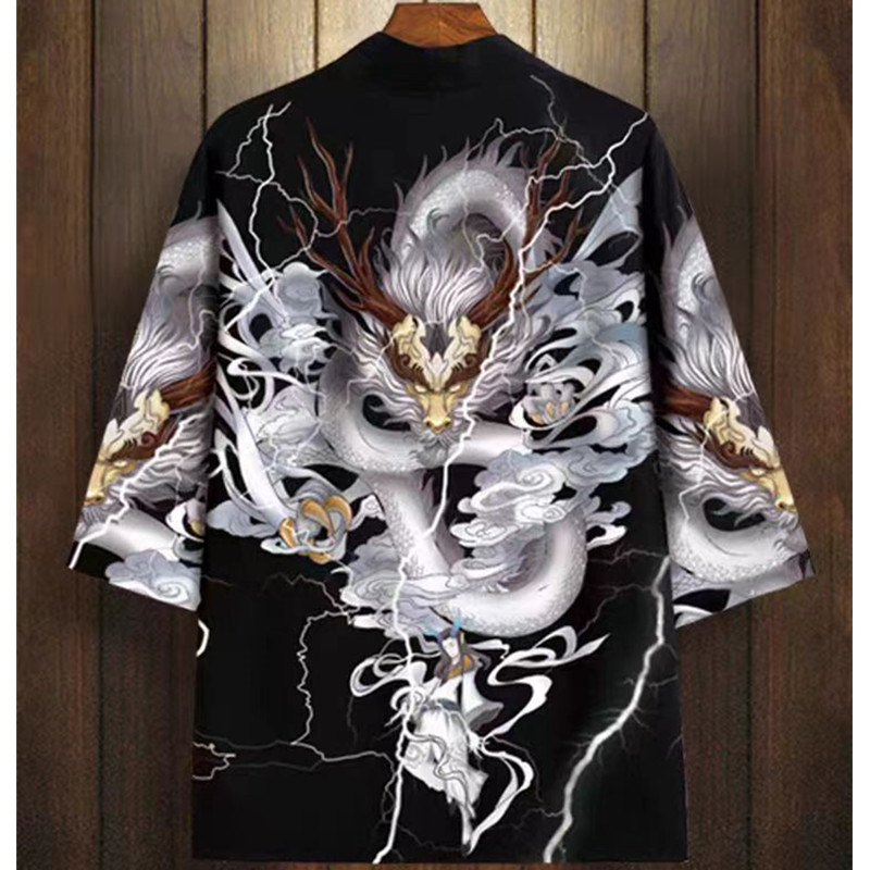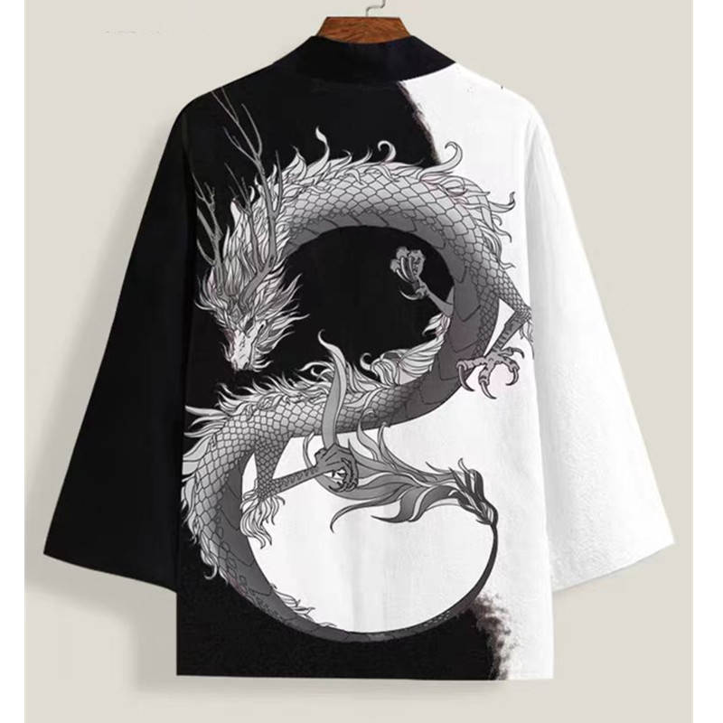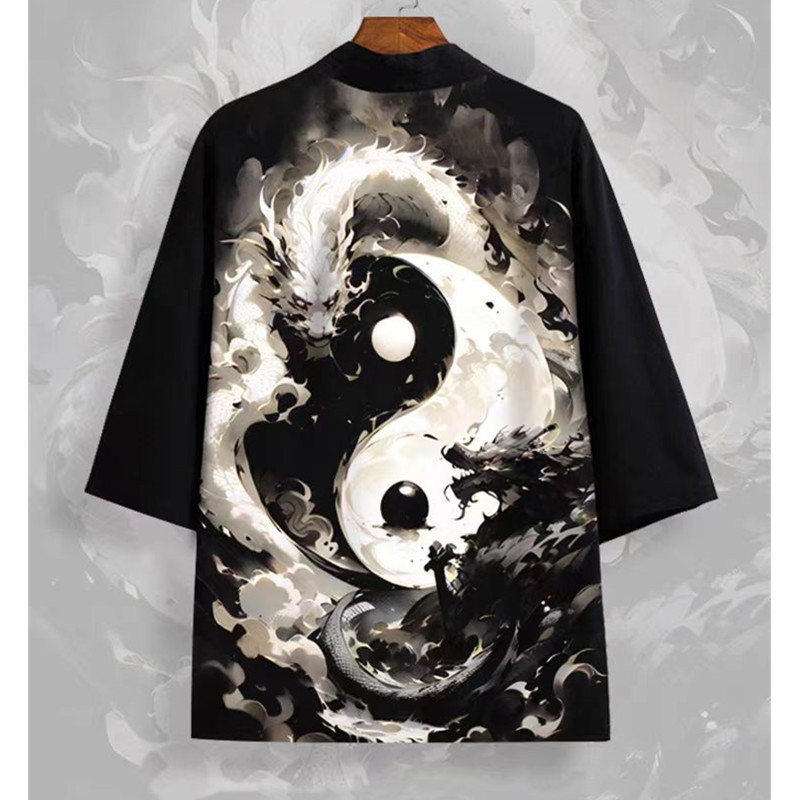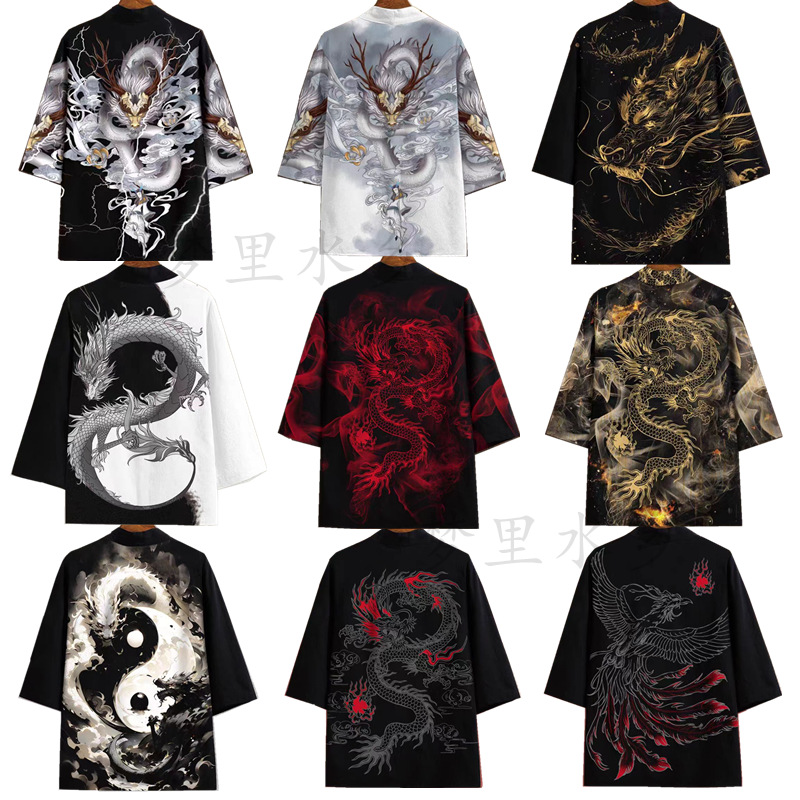 국경 간 2025 새로운 스타일의 중국 스타일 드래곤 디지털 인쇄 일본식 기모노 망토 코트 가운 잠옷 카디건 여성용