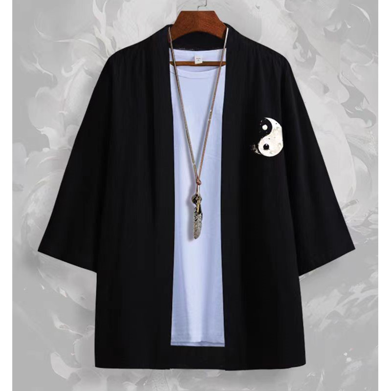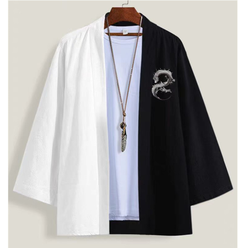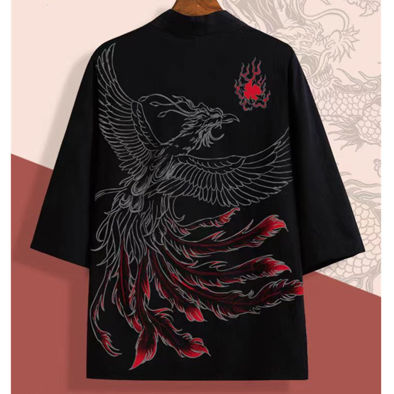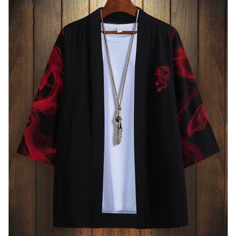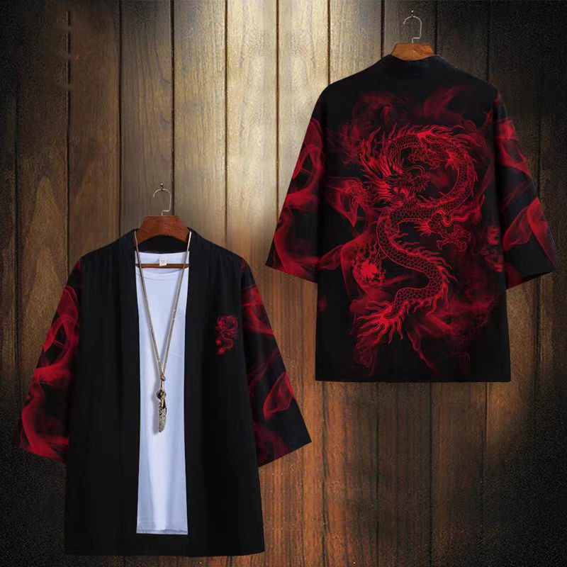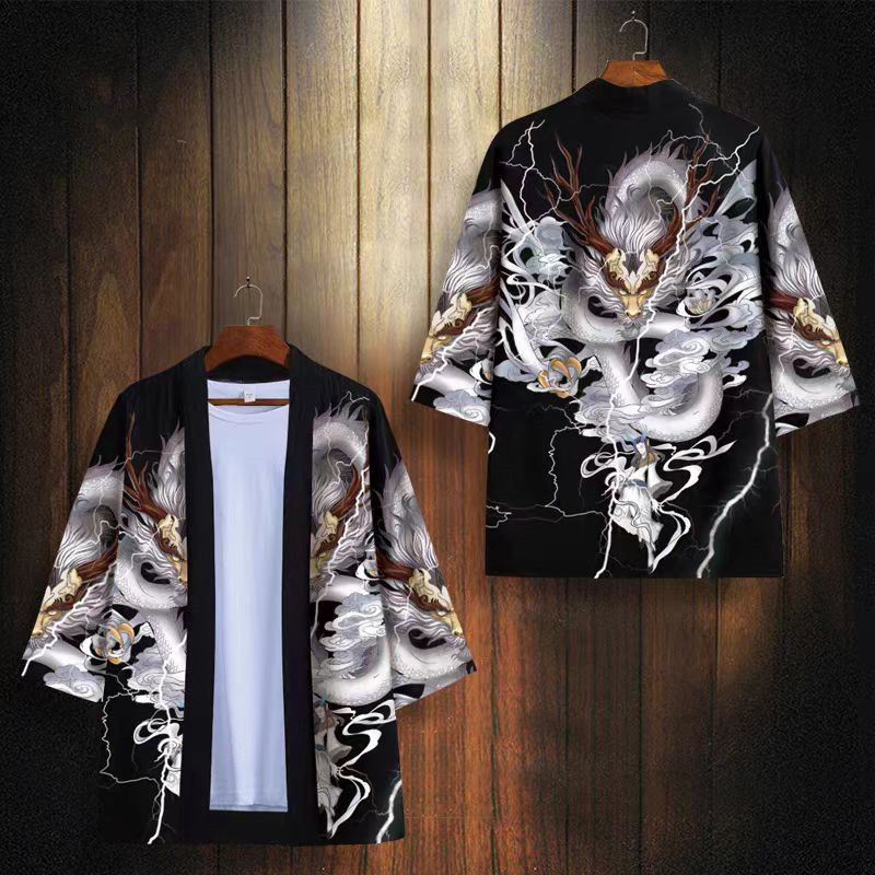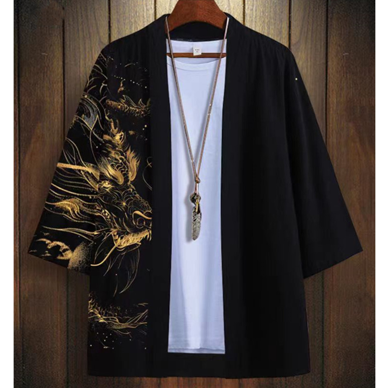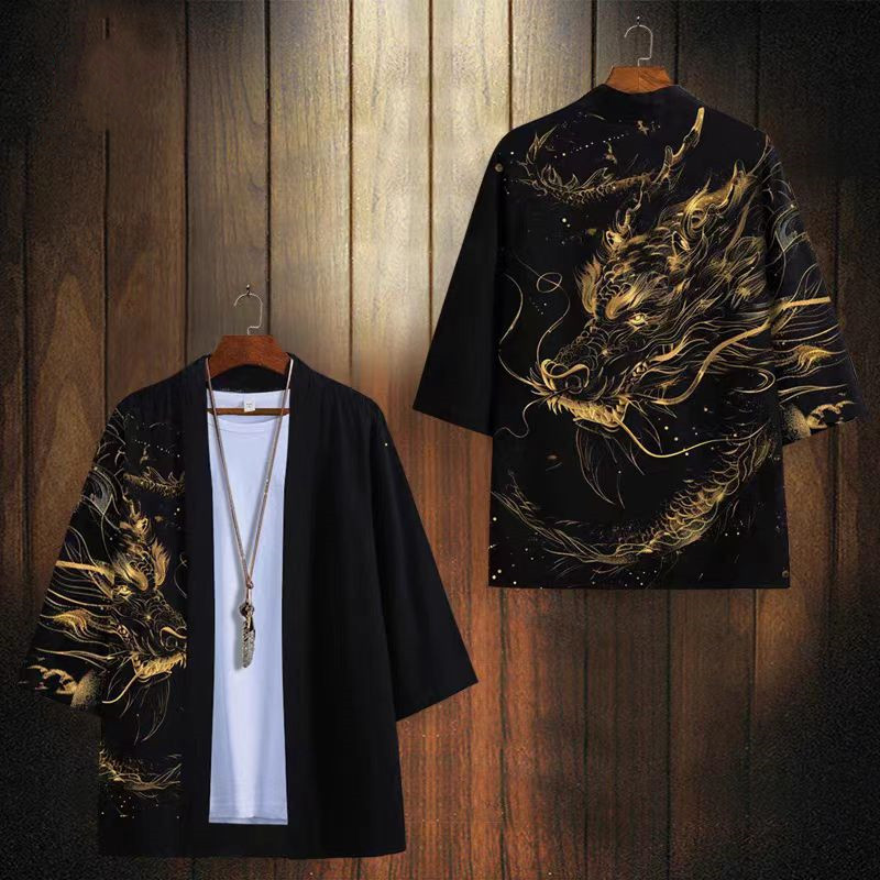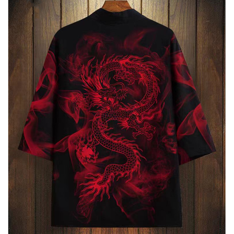 국경 간 2025 새로운 스타일의 중국 스타일 드래곤 디지털 인쇄 일본식 기모노 망토 코트 가운 잠옷 카디건 여성용
