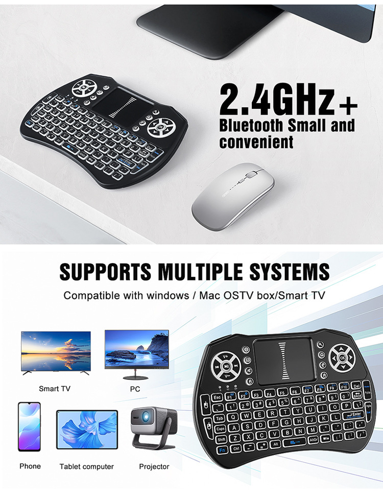 블루투스 키보드 무선 듀얼 모드 다기능 휴대용 키보드 및 마우스 세트 도매 휴대용 크로스보더 소형 RGB 백라이트