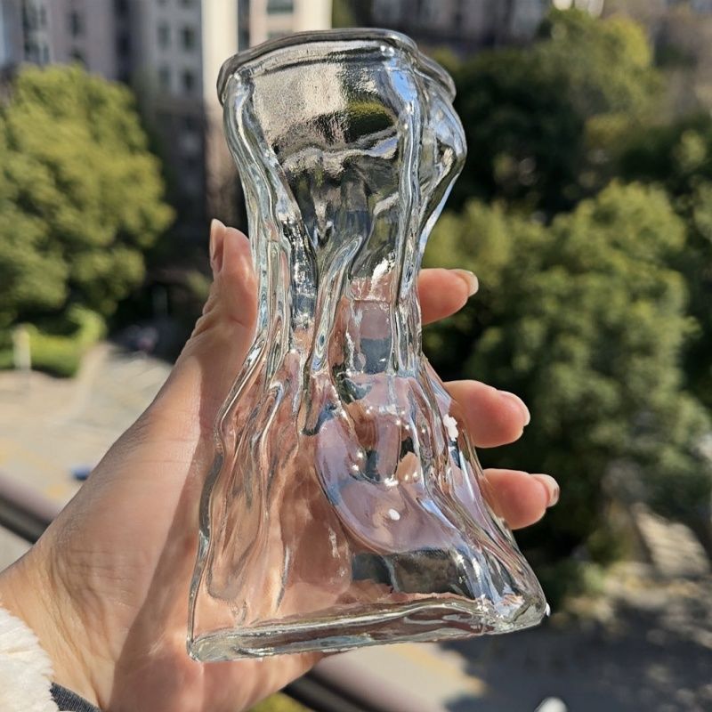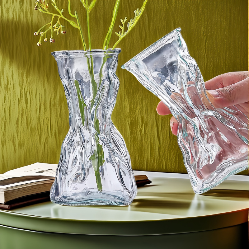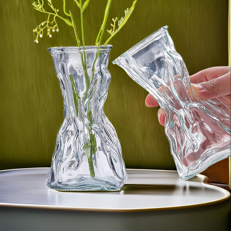 고급스러운 투명 거실 꽃병, 입이 넓은 창의적인 꽃병, 가정용 테이블 장식품, 사무실 유리 수경 꽃병