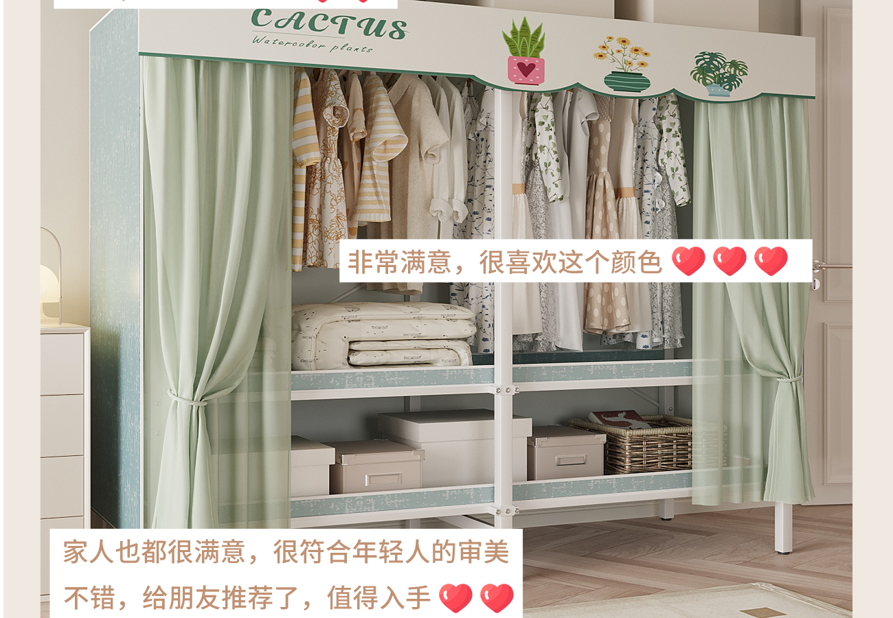 간단한 옷장 침실 홈 임대 올인원 설치가 필요없는 접이식 금속 옷장 작은 아파트 공간 절약스토어 가기