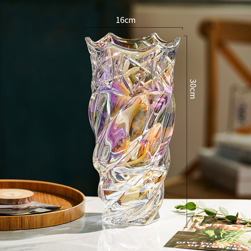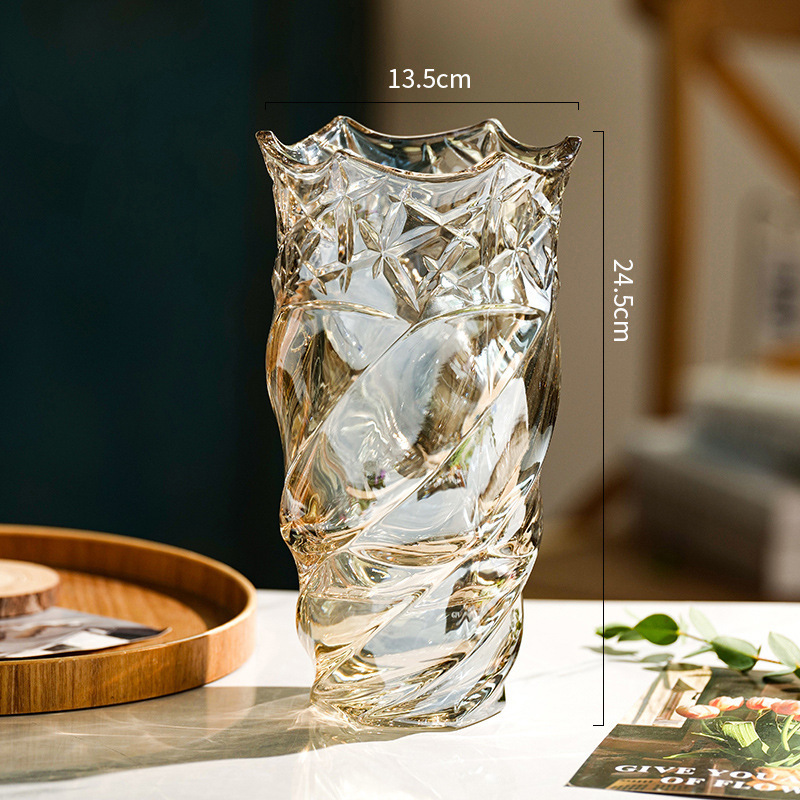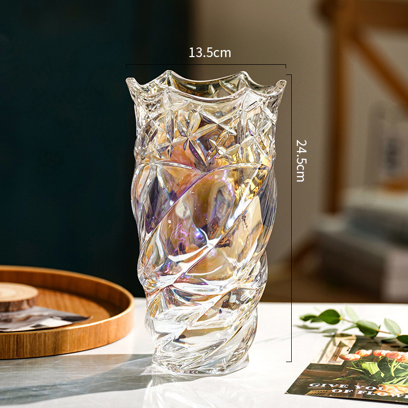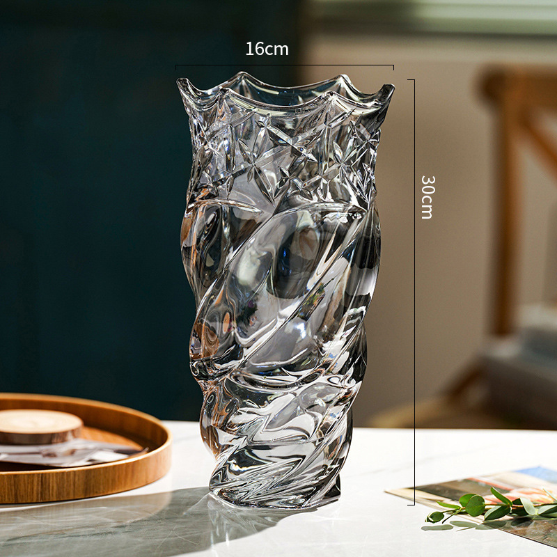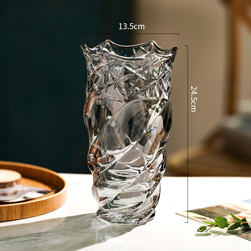 가벼운 고급 두꺼운 간단한 크리스탈 유리 꽃병 거실 탁상 장식 물로 재배 된 꽃 백합 부자 대나무 꽃병