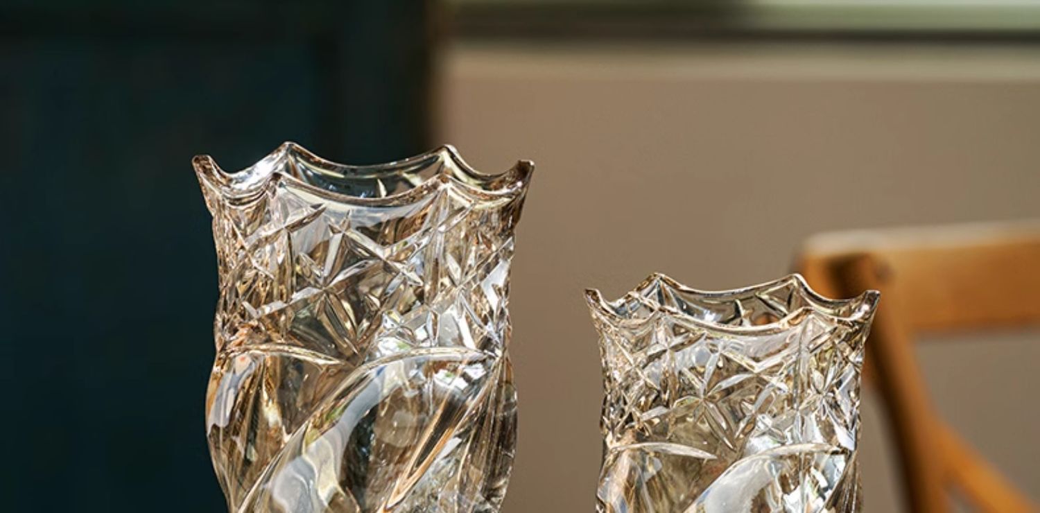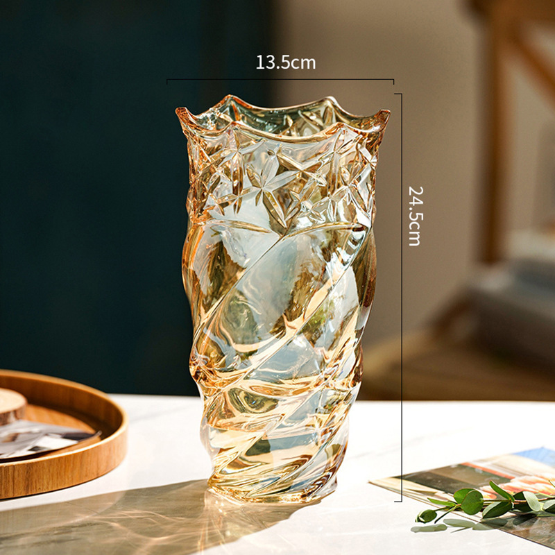 가벼운 고급 두꺼운 간단한 크리스탈 유리 꽃병 거실 탁상 장식 물로 재배 된 꽃 백합 부자 대나무 꽃병스토어 가기