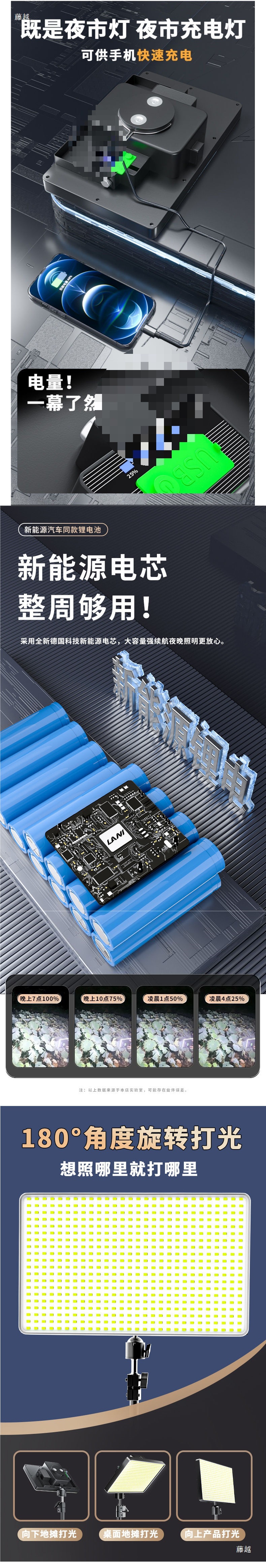 • 사각형 [1800 백색광] 충전식 휴대폰/전자 디스플레이/재정 자원 [캠핑*스톨*긴급] 브래킷 모델